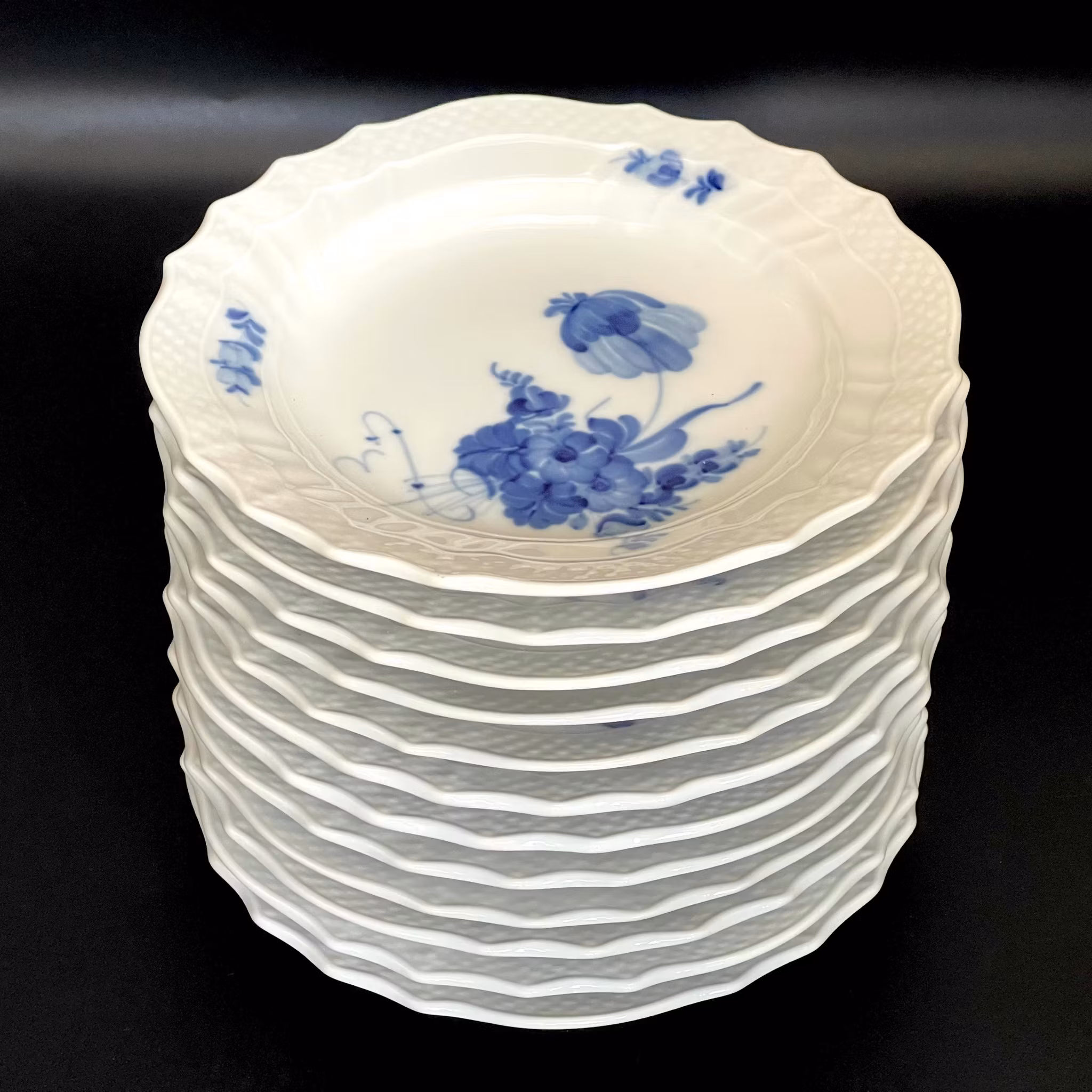 Royal Copenhagen, 12 tallerkener i blå blomsterporcelæn, 1 sort
