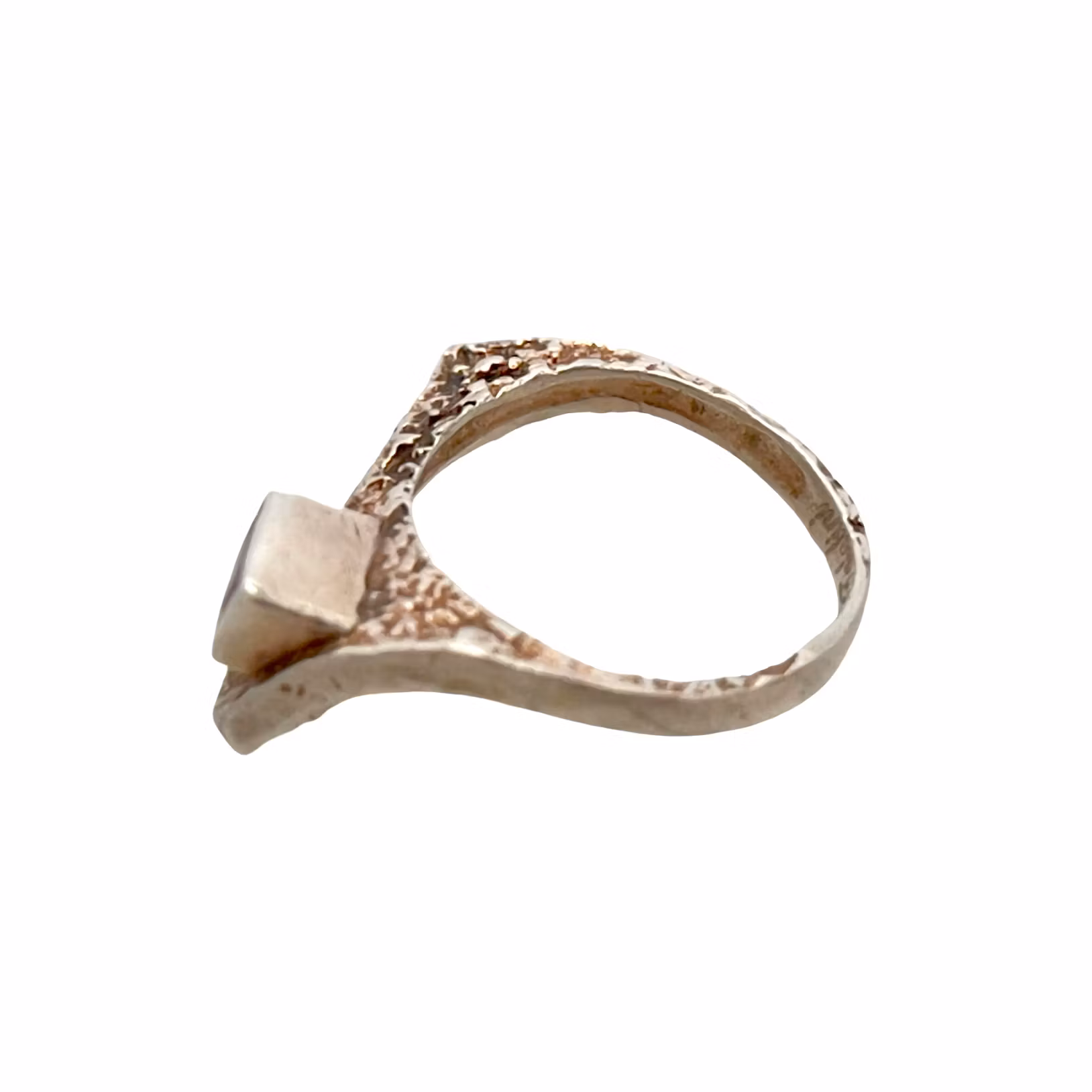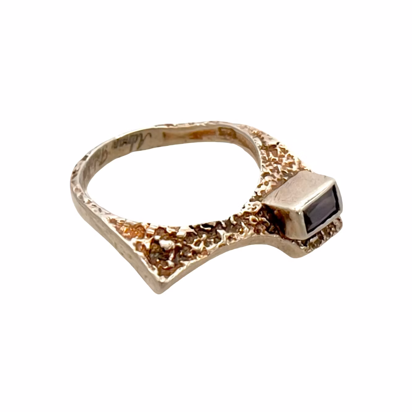 Säljer en exklusiv och ovanlig handgjord ring signerad Adnan Talalini, känd för sina skulpturala och konstnärliga smycken. Ringen har en unik asymmetrisk form med strukturerad yta och en infattad rektangulär ametist i vackert lila.