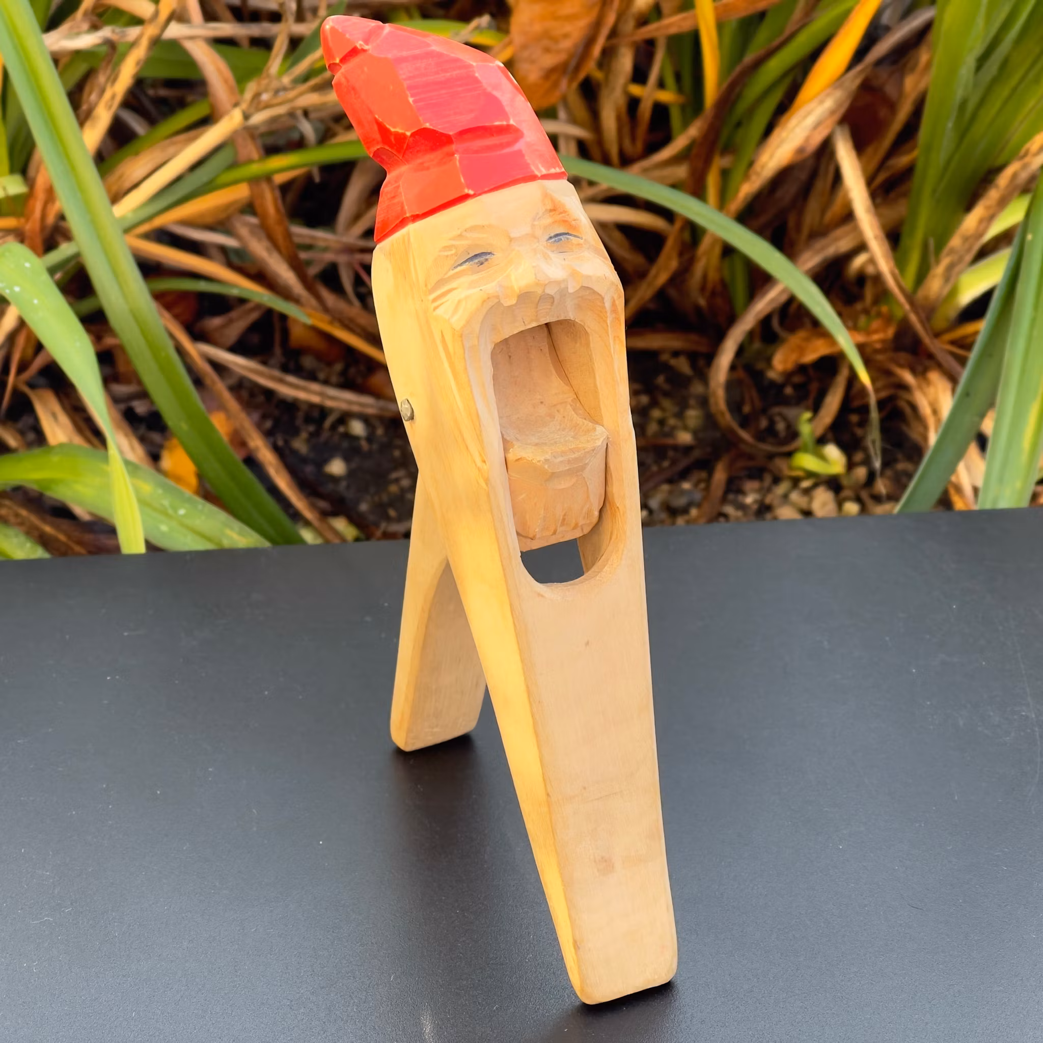 Ældre nøddeknækker, julemanden 395 kr Læg i kurv Information Äldre nötknäckare / nötknäppare, tomte delvis bemålat träLängd: ca 22 cm