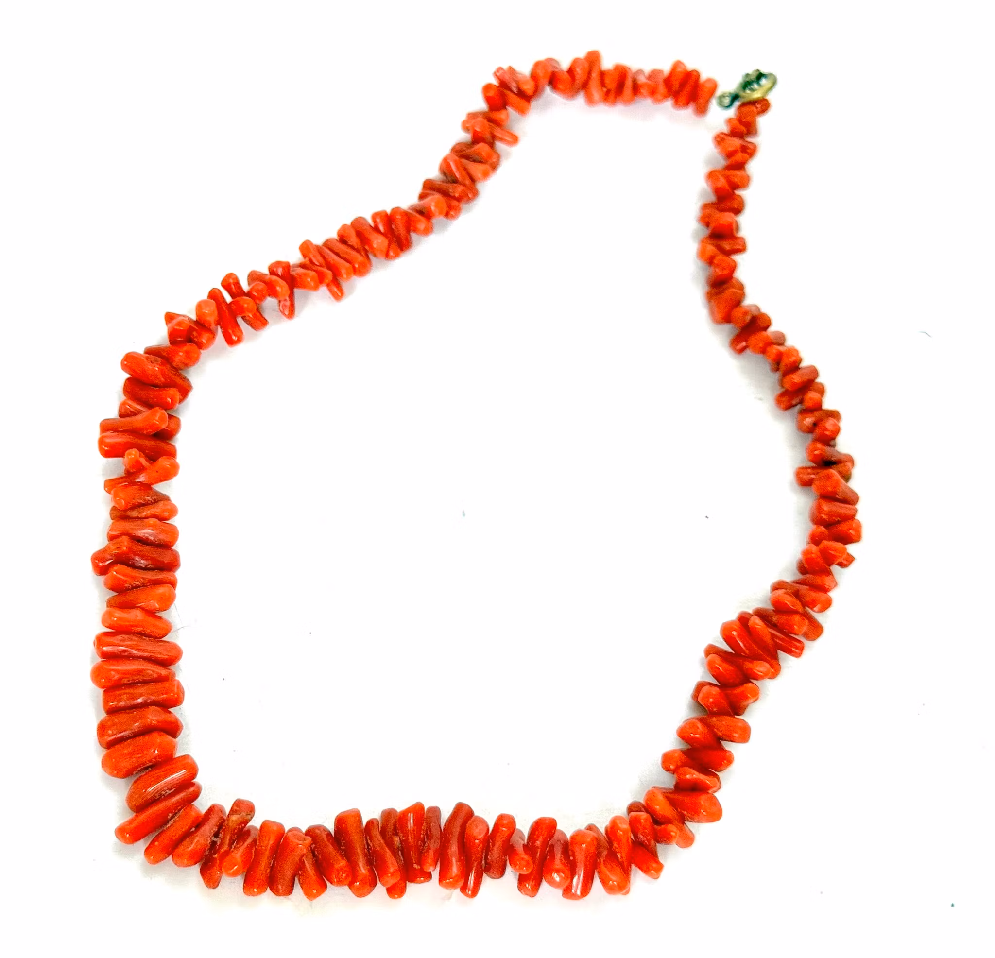 Antik röd korall halsband 795 kr Læg i kurv Information Antik äkta röd korall halsbandVikt: 23 gram, Längd: 40 cm