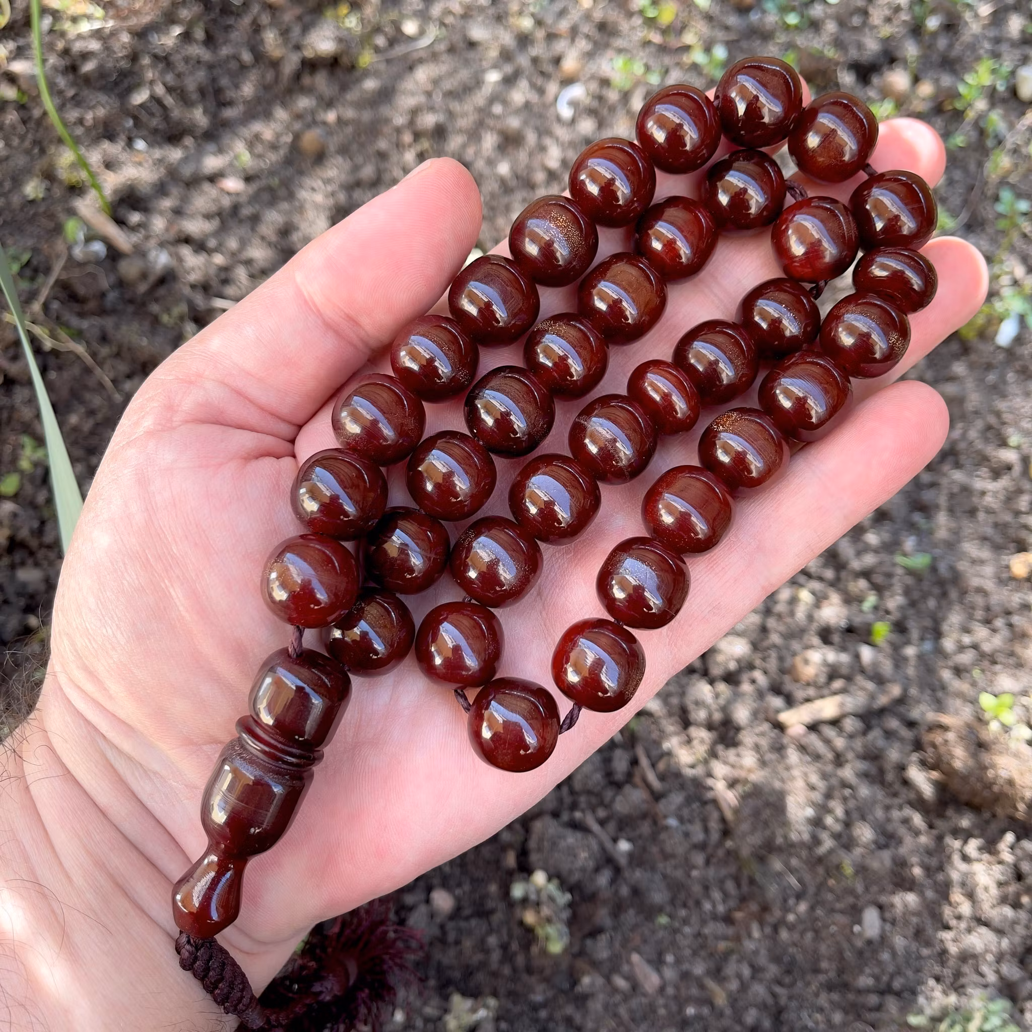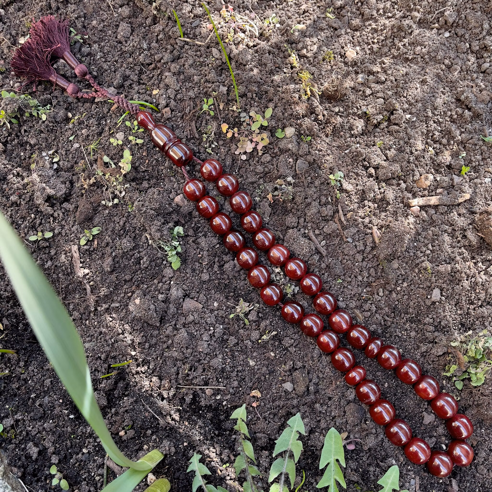 Gammel bakelit rosenkrans, 33 perler, 113 g 380,00 € Læg i kurv Information Gammal bakelit radband, 33 pärlorTotal vikt: 113 gramPärlor (mm) ca 15 mm