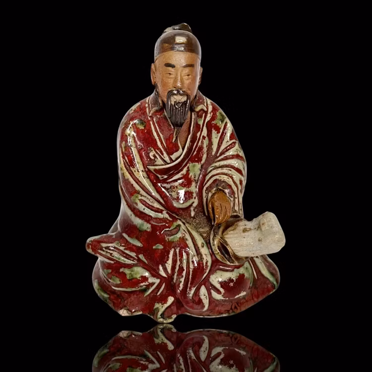Gammal Kinesisk keramik figurin, handmålad, stämplad