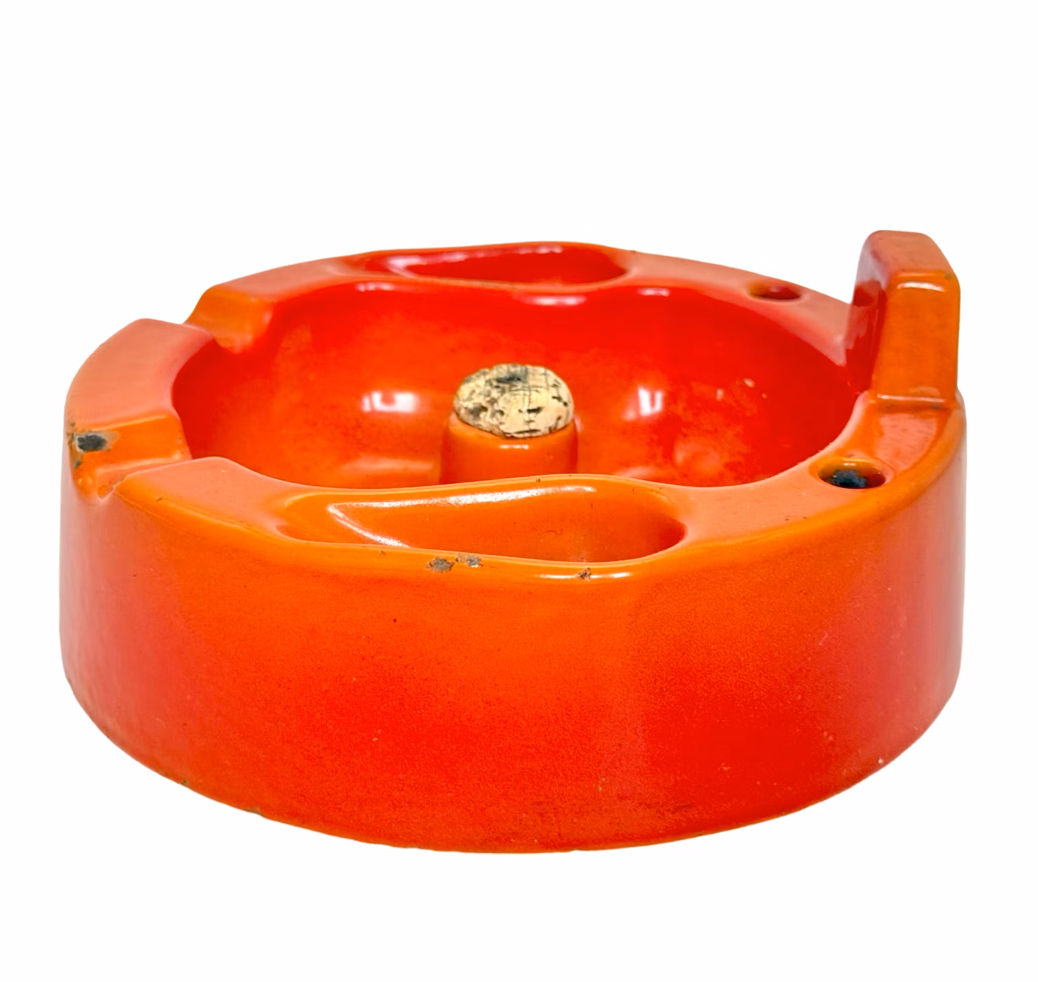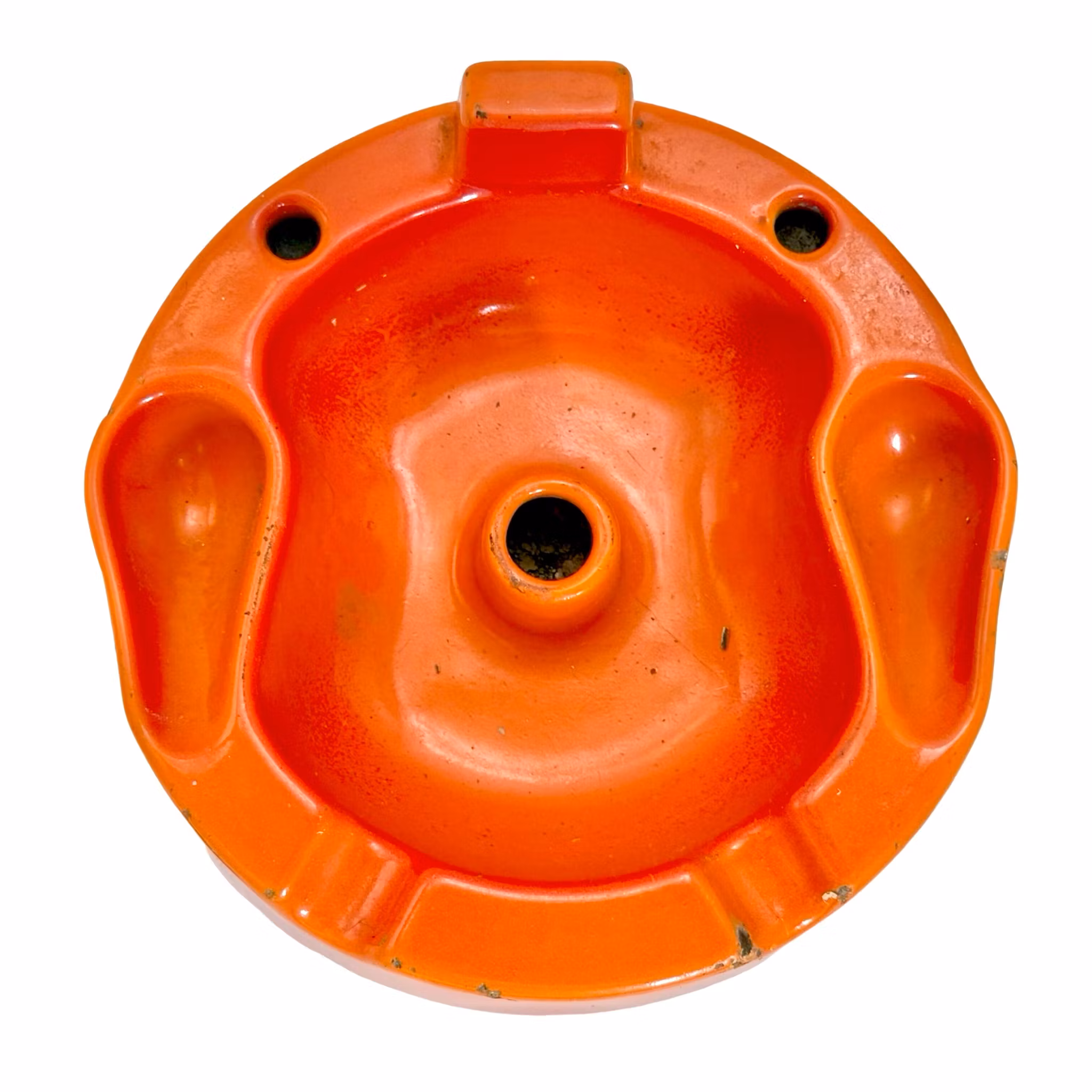 En härligt keramik askkopp i klassisk orange ton – perfekt för samlare, inredning i vintage och retro stil eller som dekorativt objekt.