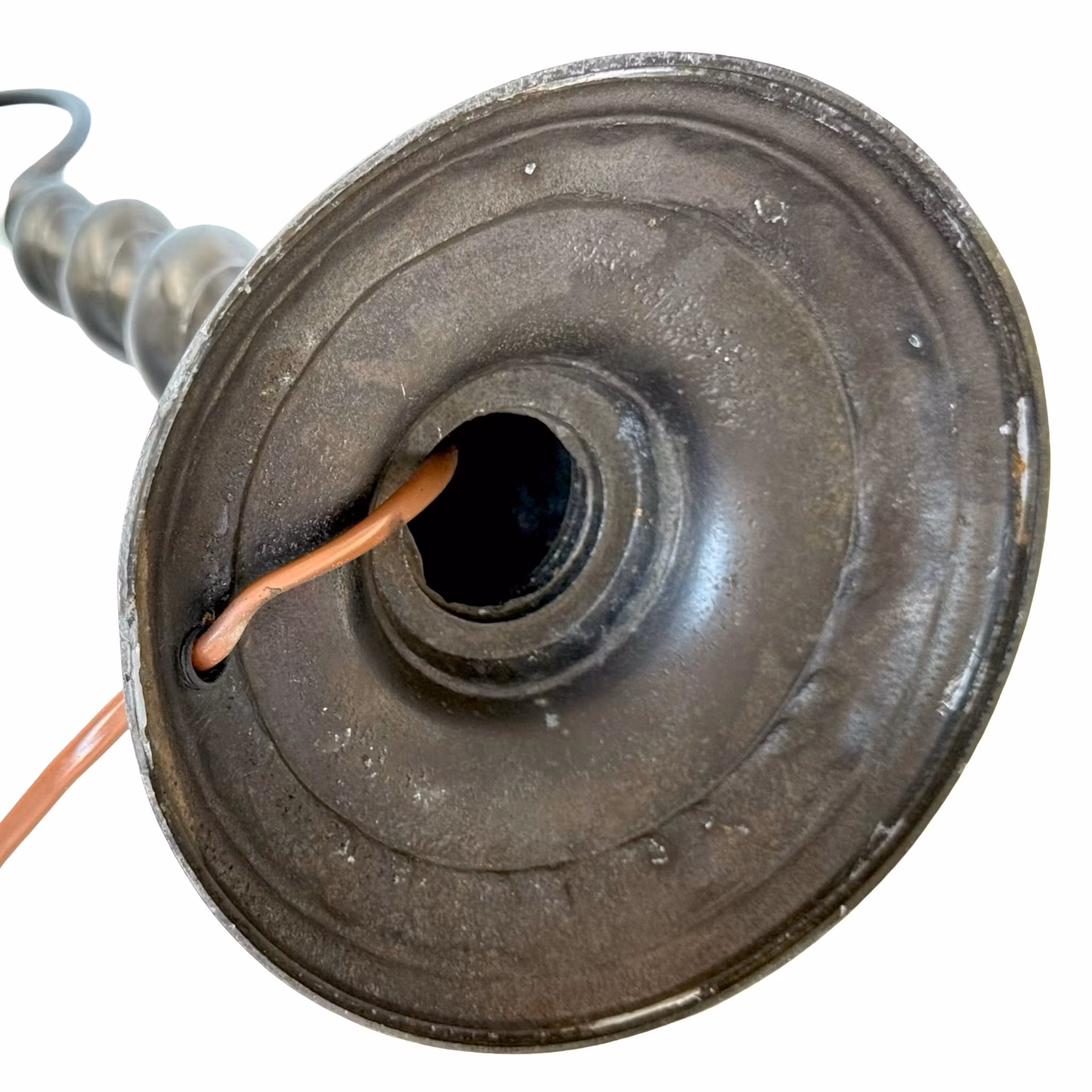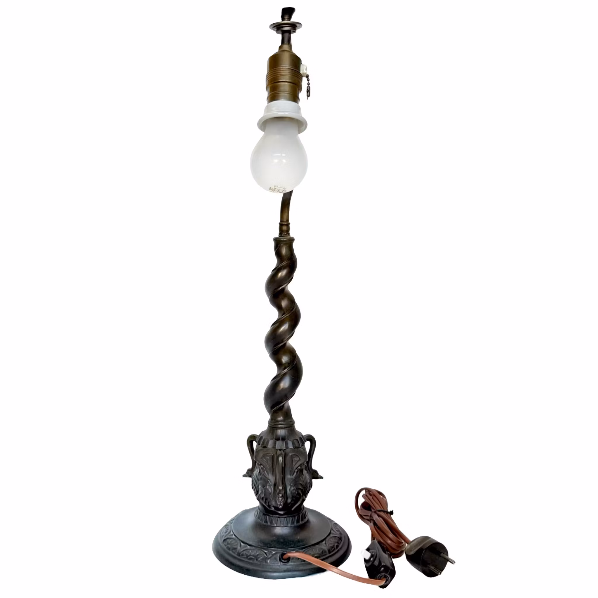 Antik Bordslampa, patinerad metall, jugend