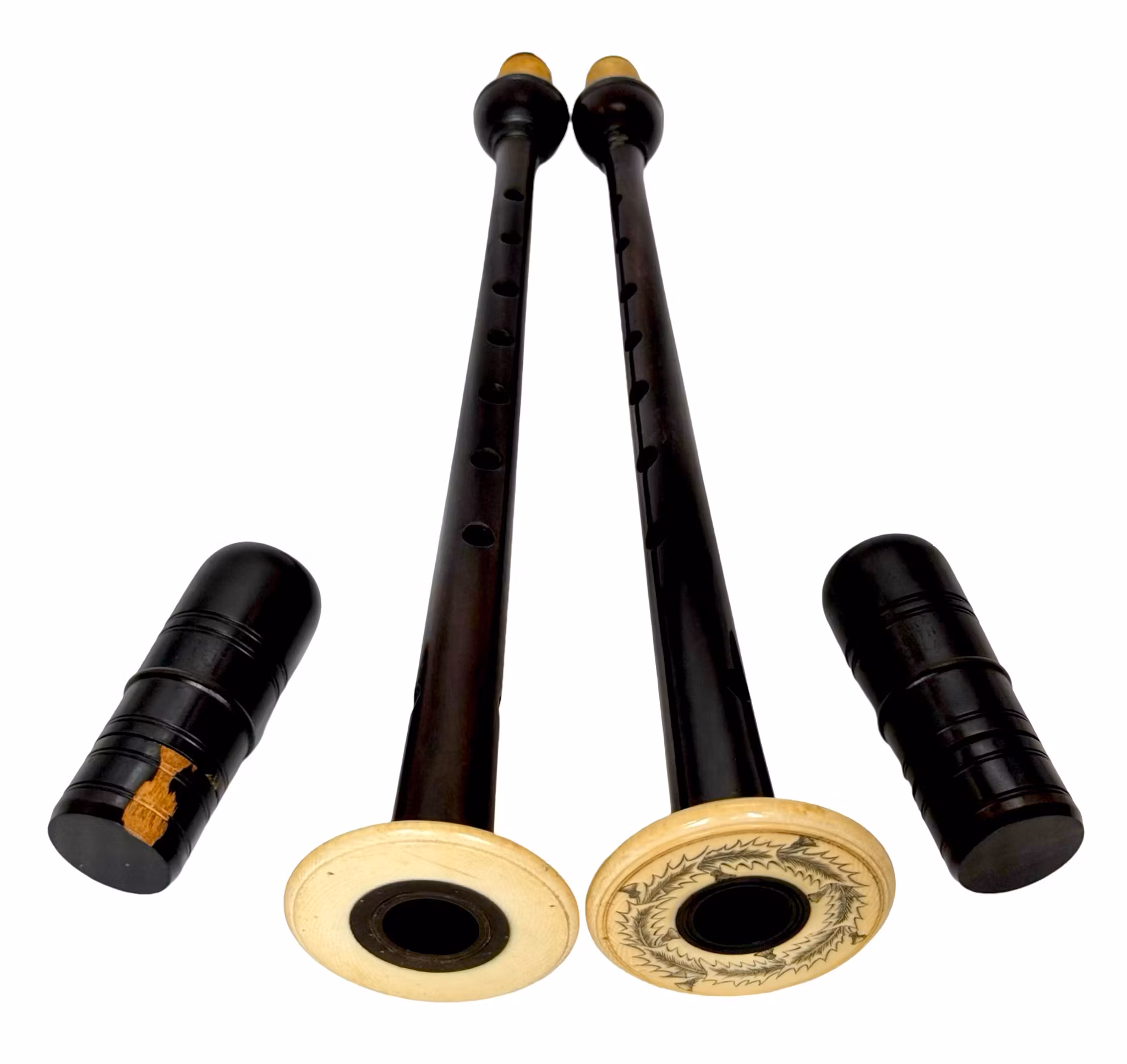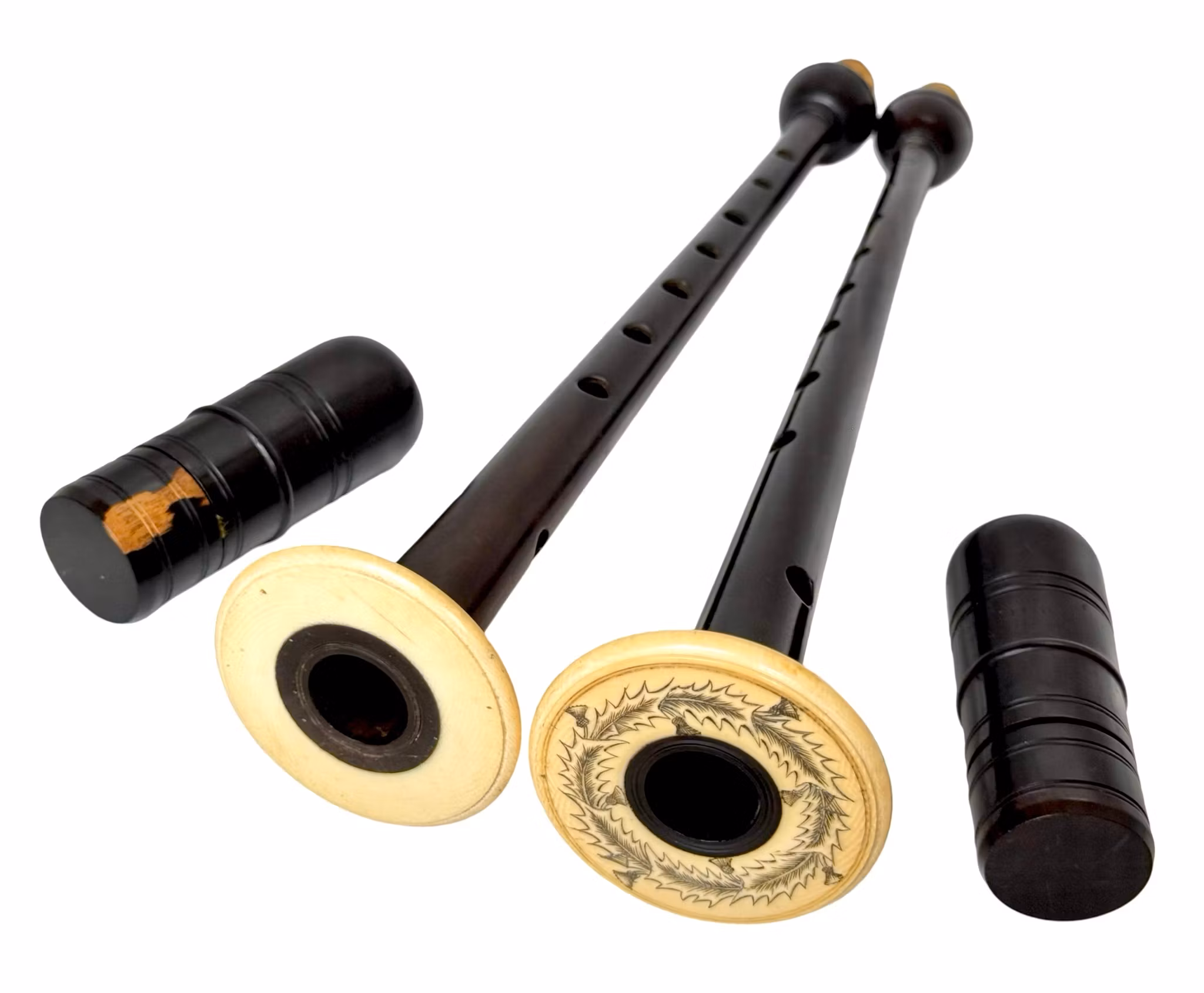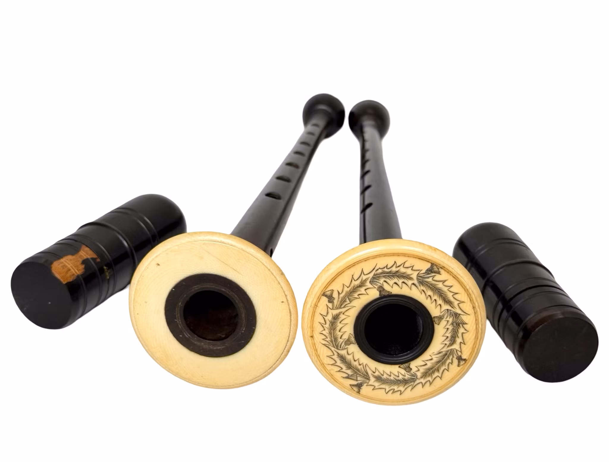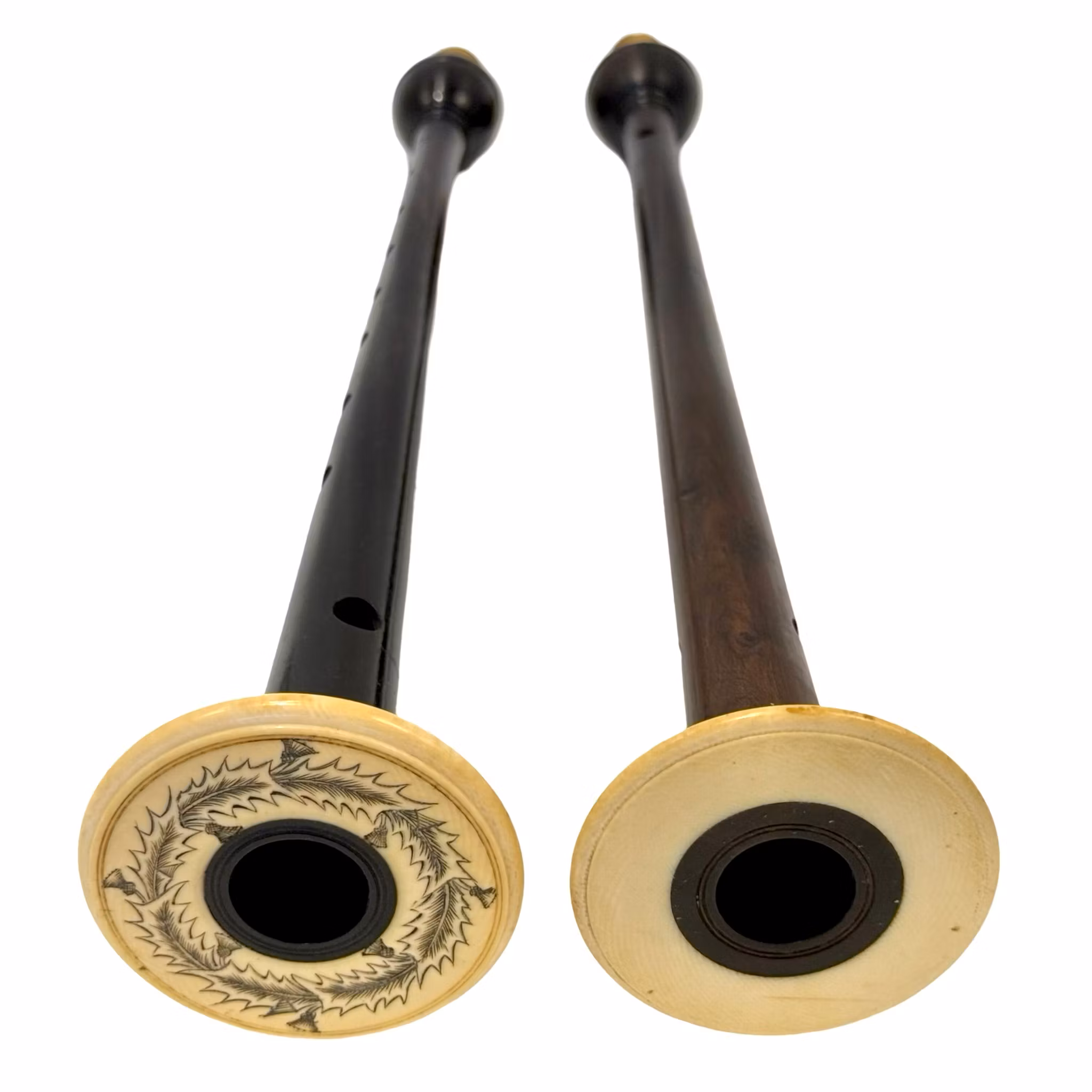 Högkvalitativ Skotska säckpipa elfenben med lång svart trä chanter, 1800-talet