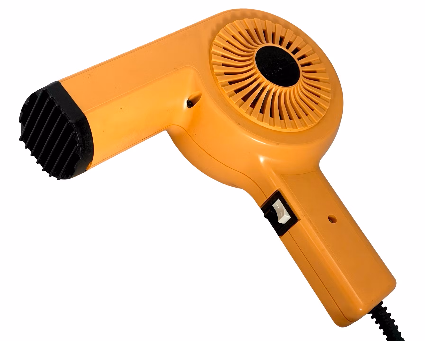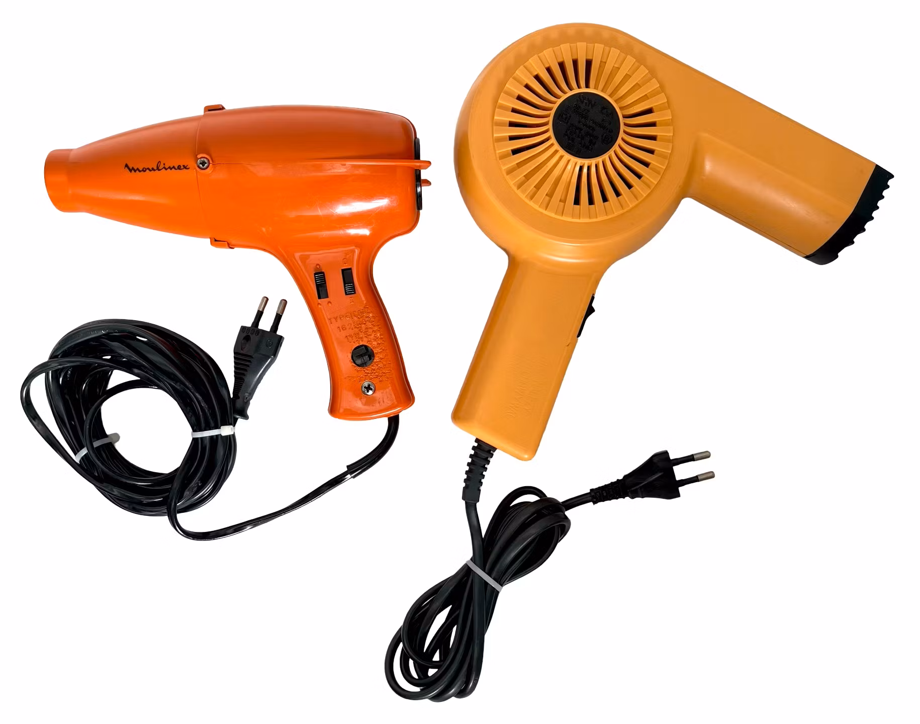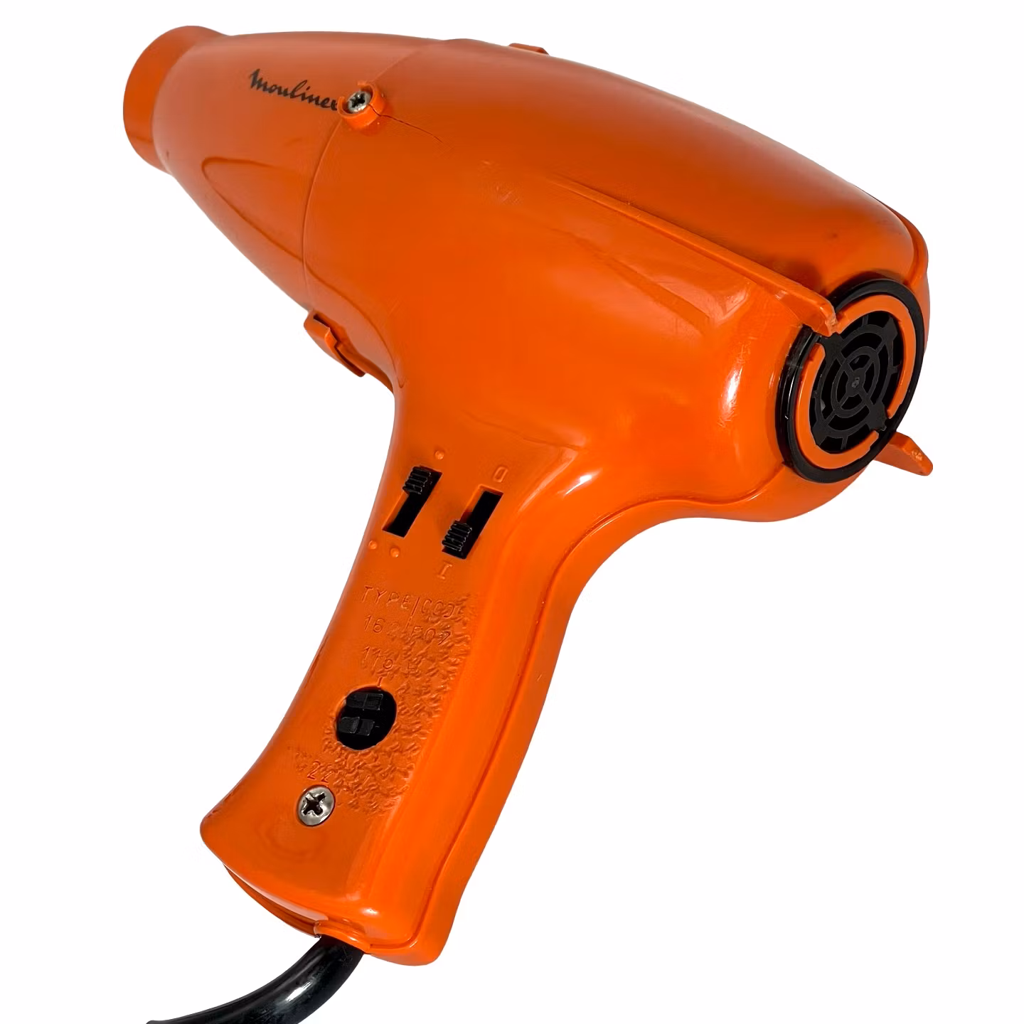 Vintage hårtorkar - Moulinex 162 & Farel SRN-15A, Hårtork orange, 70-tal.