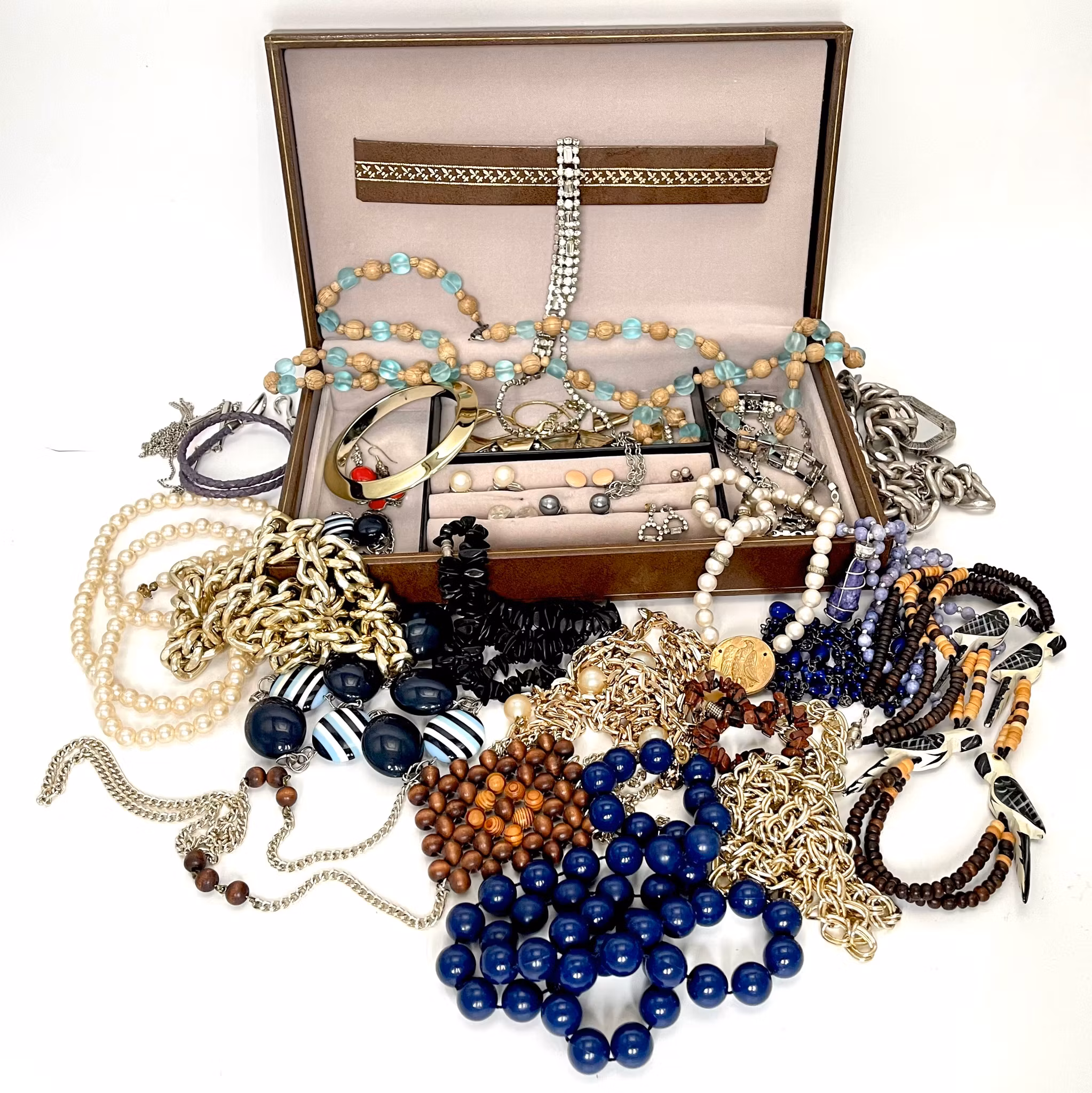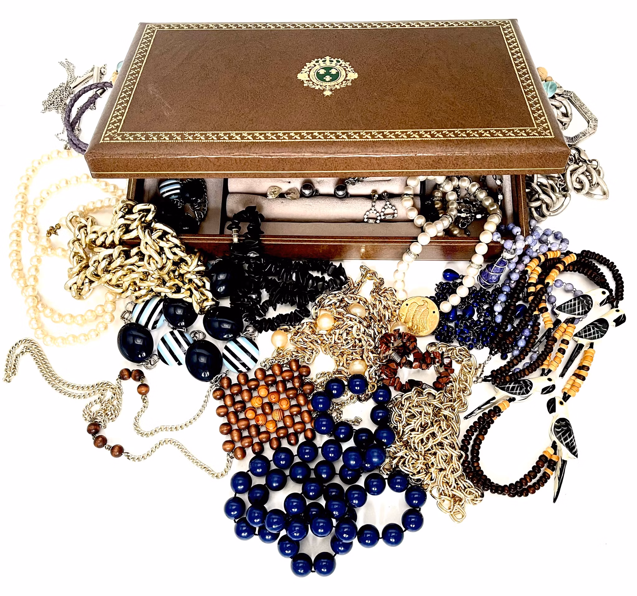 Vintage, viele ältere Bijouterie/Schmuckstücke in Box 995 kr In den Warenkorb legen Information Vintage, Parti äldre Bijouterier/Smycken i Skrin