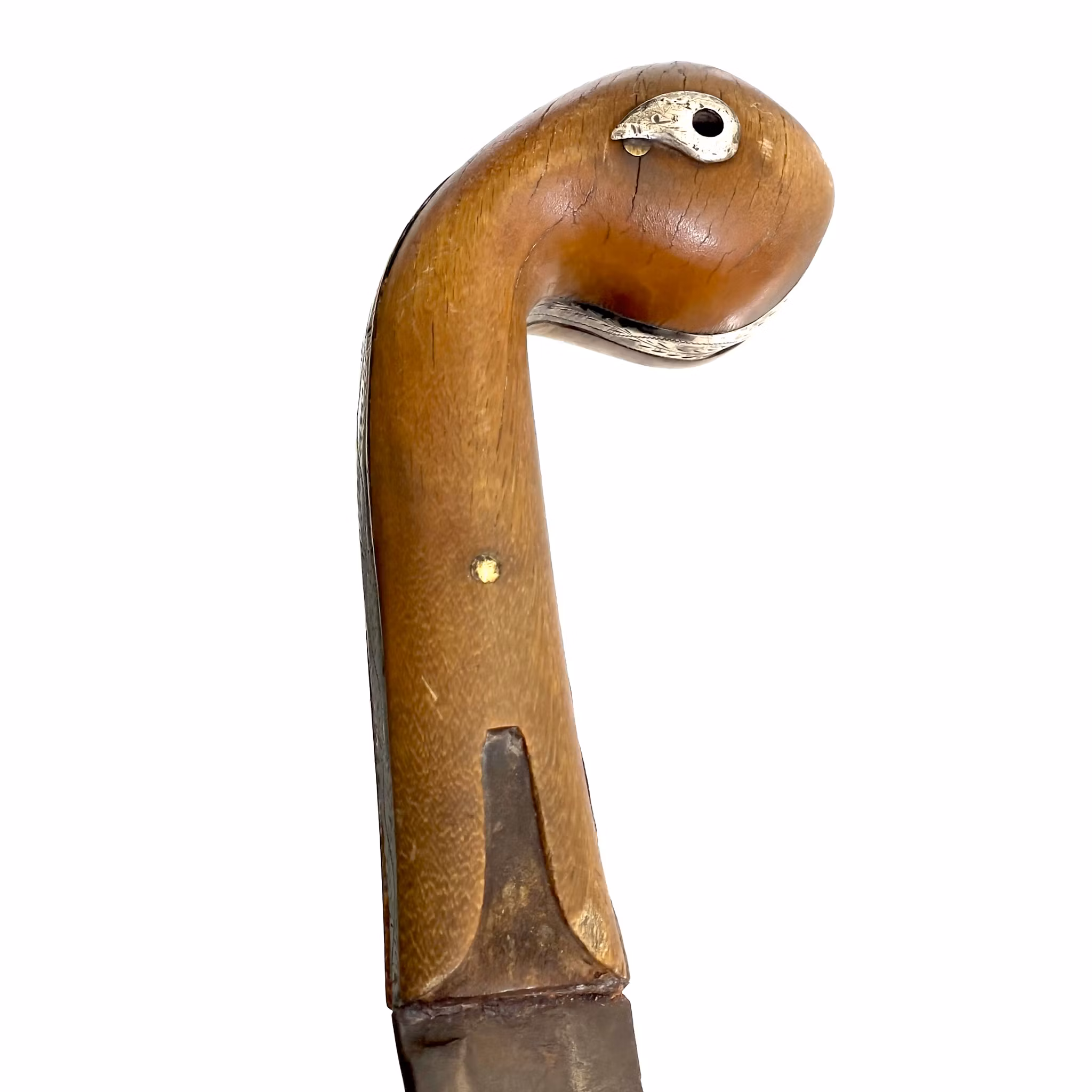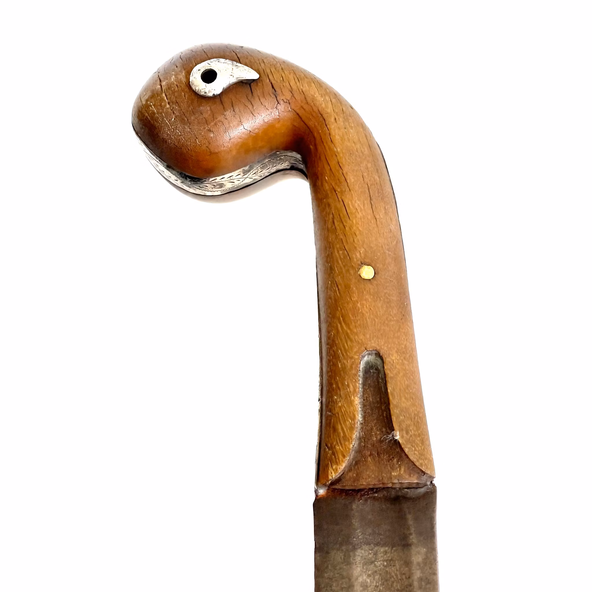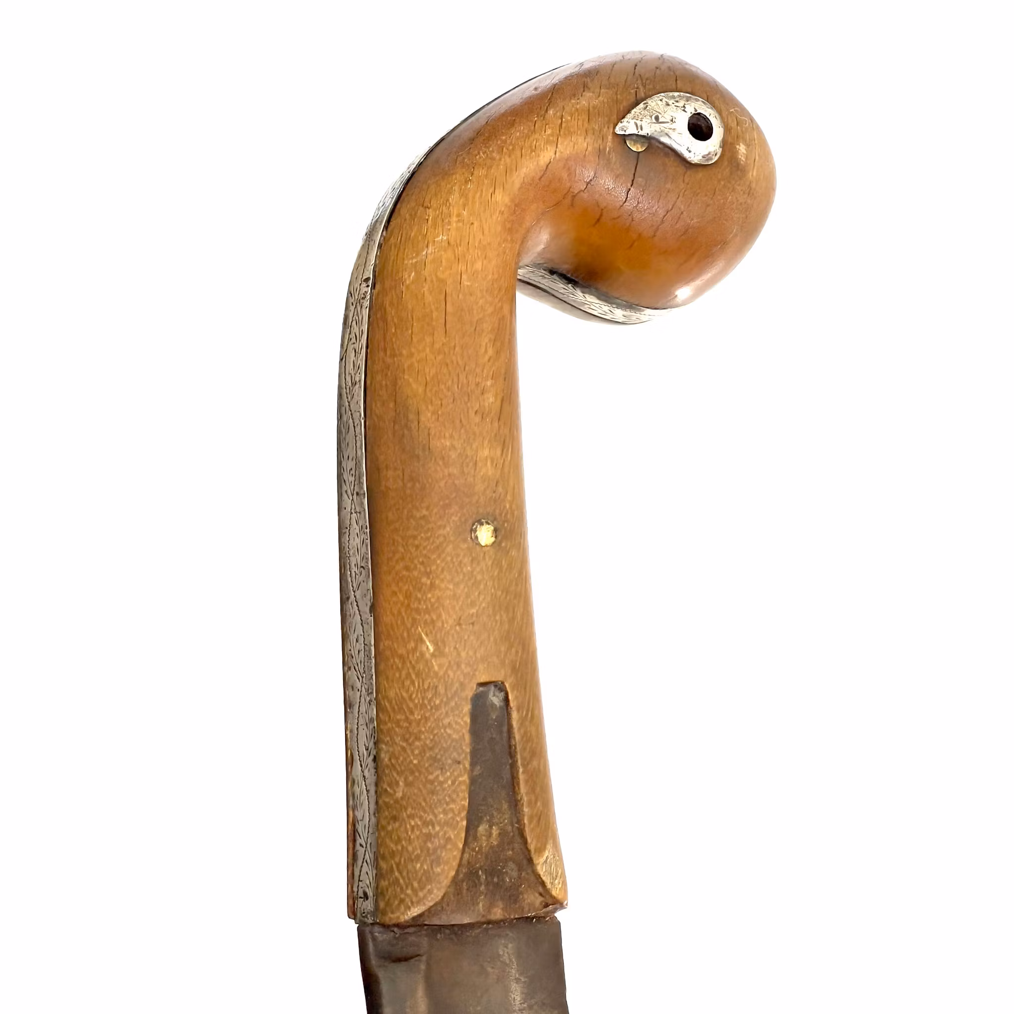 Antik Ottomansk Shamshir svärd, "Jaohar" Damaskus stål / Damaskus järn med noshörning horn och silver handtag