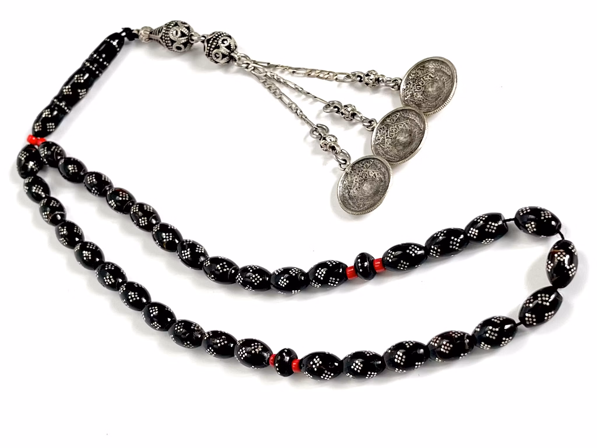 Totalvikt: ca 34 gram, Pärlor: ca 12 x 8 mm, Totallängd: ca 38 cm