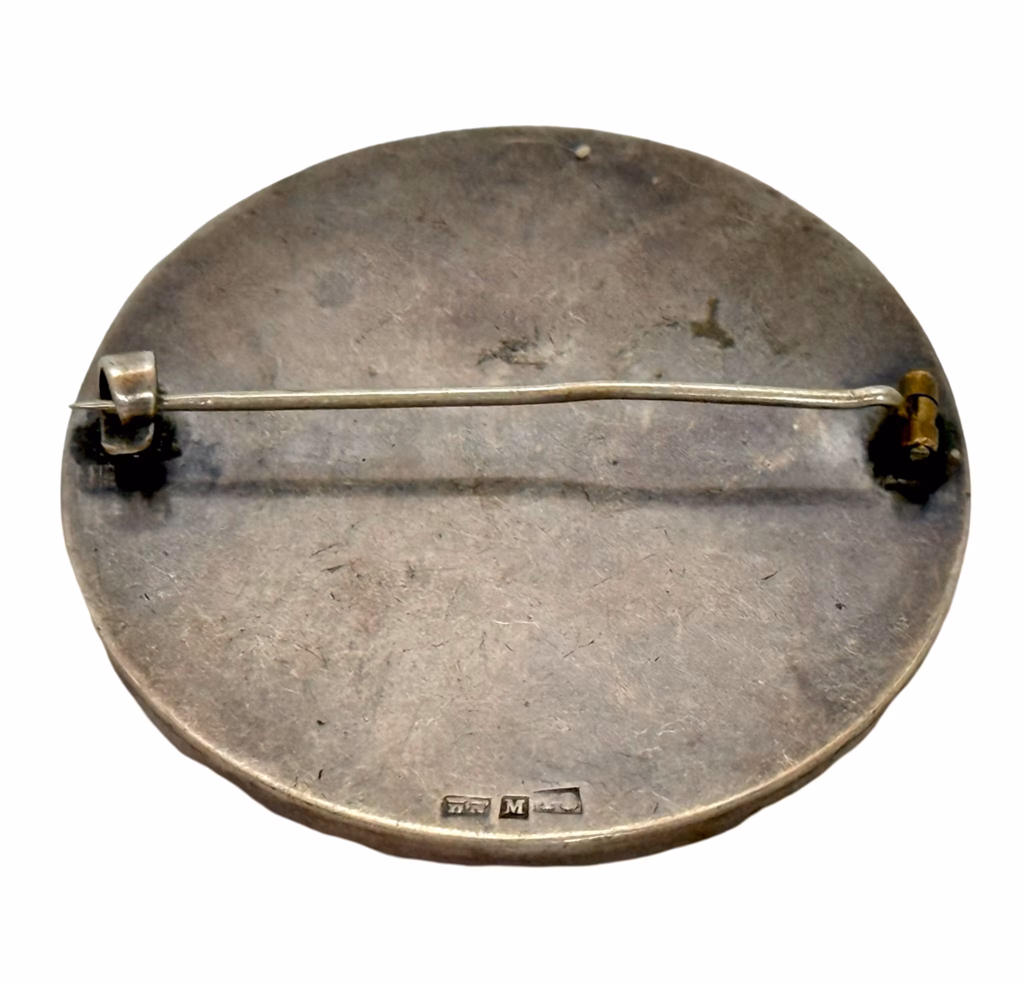Silver Brosch, miniatyrmålning på porslin, signerad G.W.