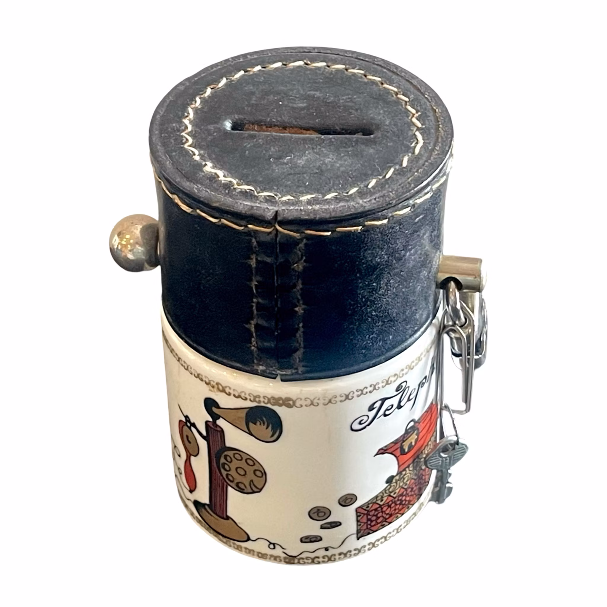 Telephone piggy bank, porcelain by Helmut Krüger with leather lid 365 kr Add to cart Information Telefon sparbössa, porslin av Helmut Krüger med läderlockHöjd: ca 11 cm
