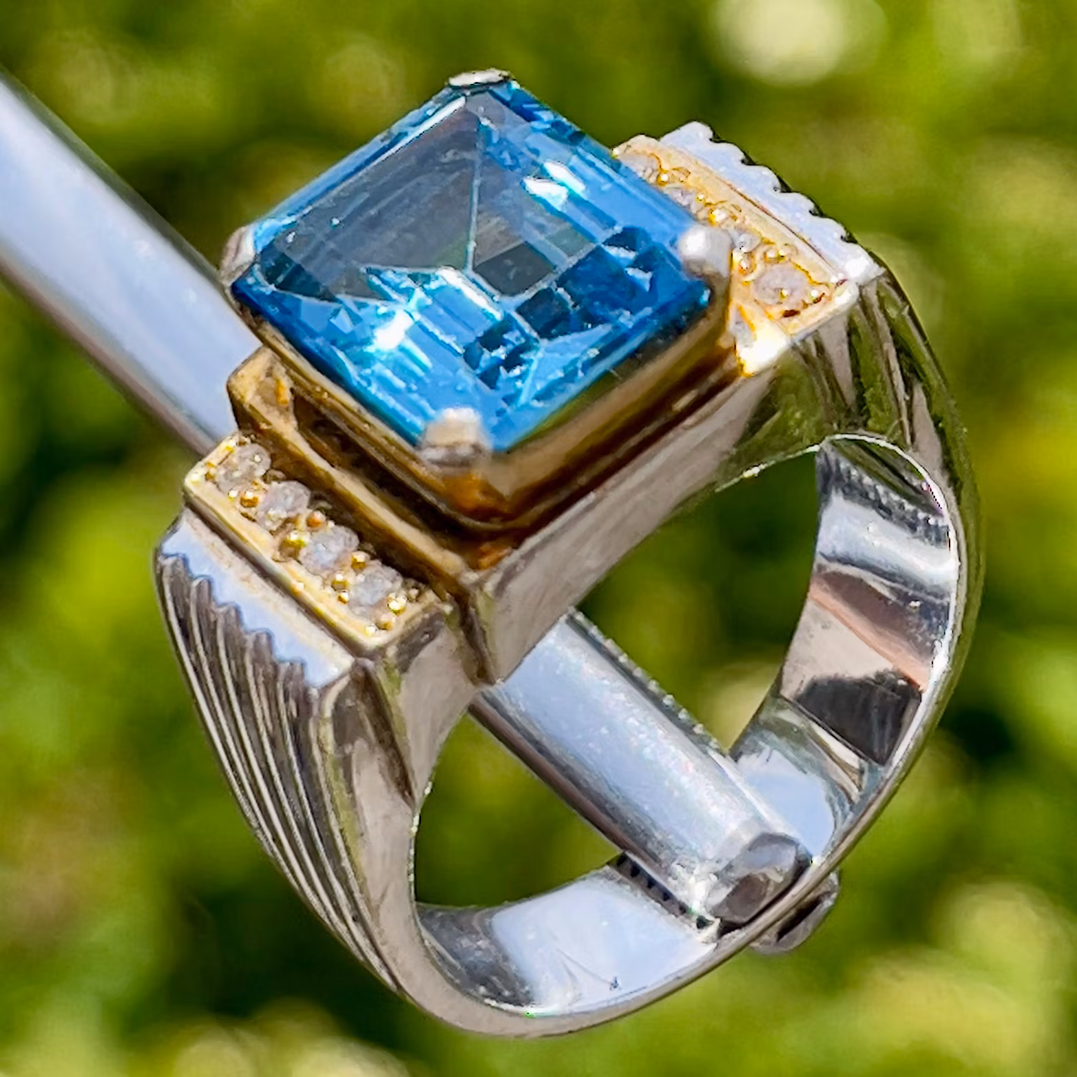 6,75 Karat naturlig blå Topaz, handgjord silverring med certifikat