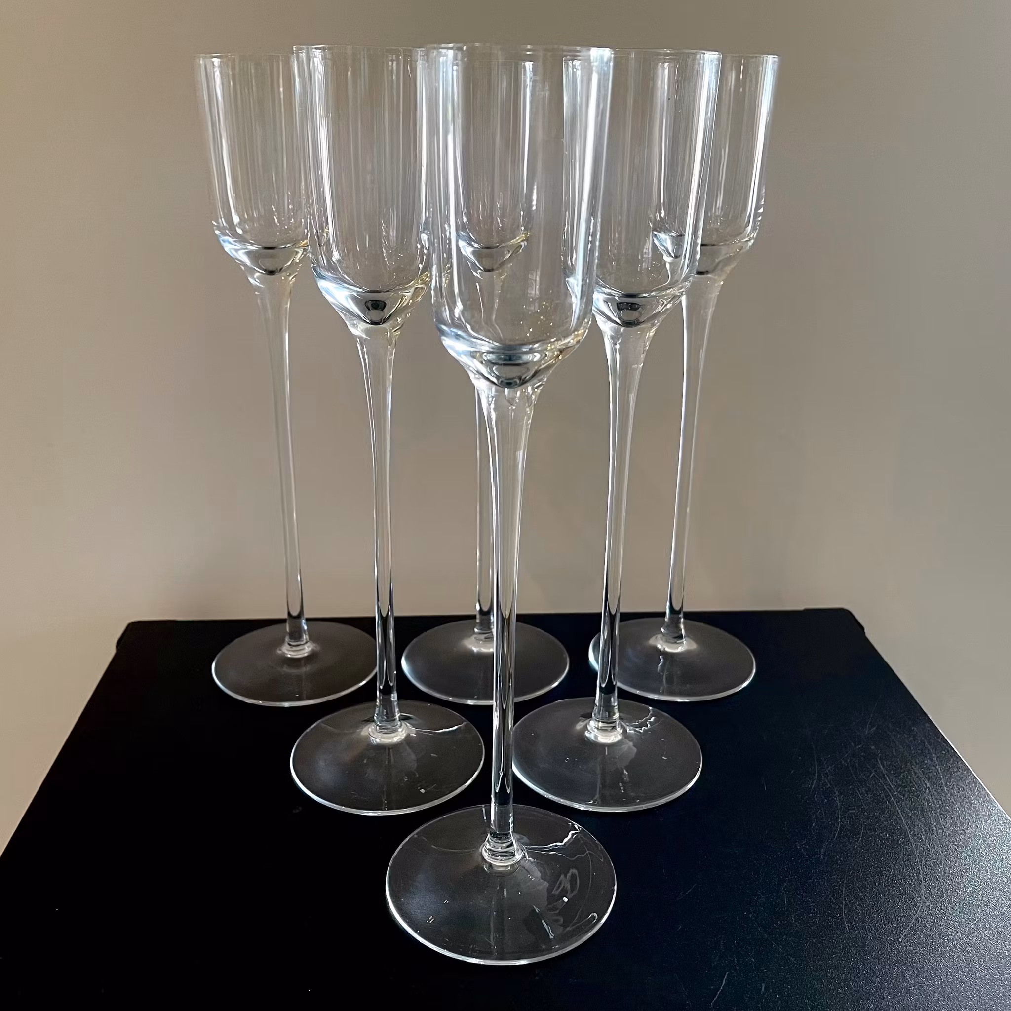 6 copas de champán y aguardiente sopladas a mano. 395 kr Añadir al carrito Información Vintage, 6 st Champagne snaps handblåst glas Höjd: ca 26 cm i bra skick.