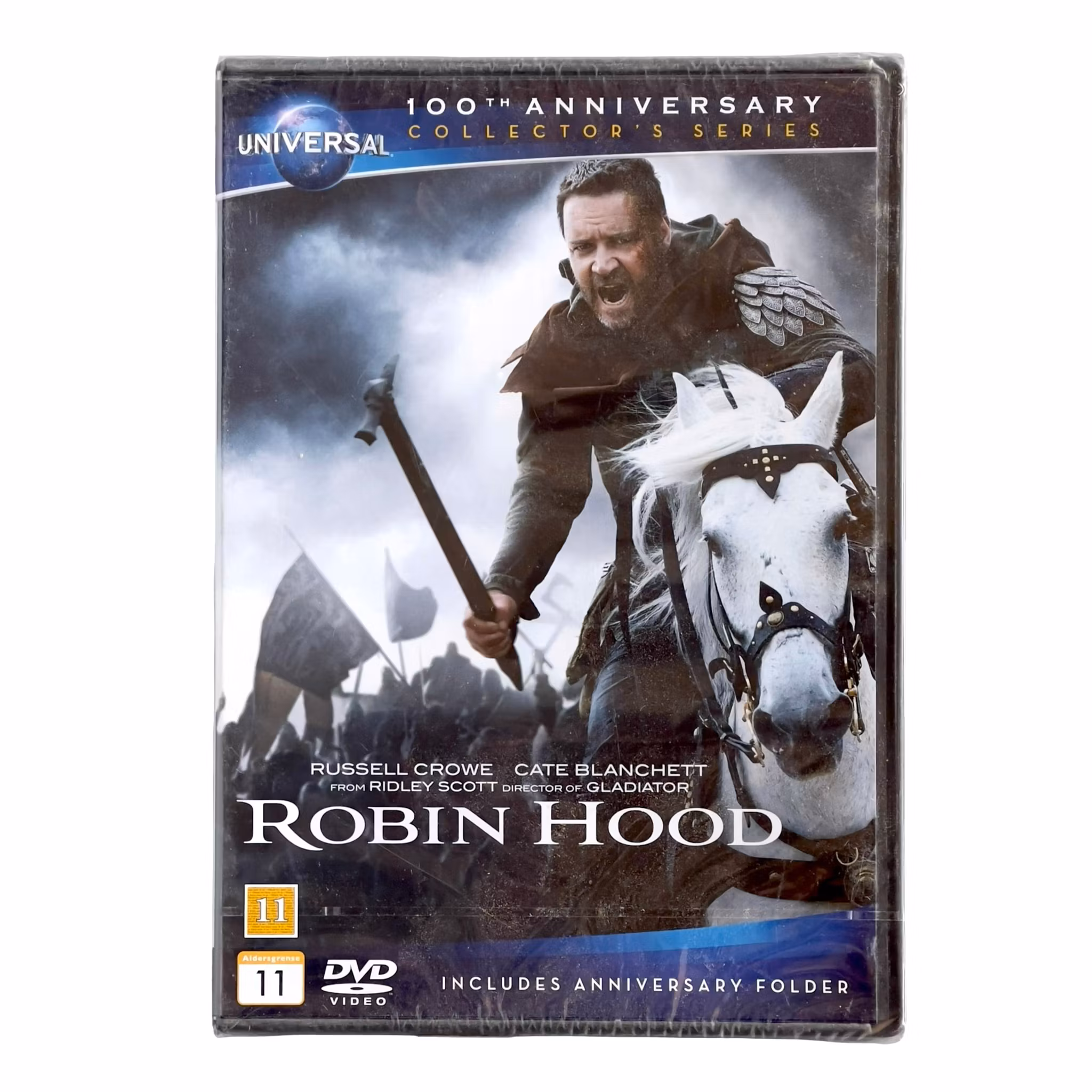 Exklusiv samlar utgåva av Robin Hood (2010) med Russell Crowe och Cate Blanchett, utgiven i samband med Universals 100 årsjubileum. Denna version innehåller Director's Cut med extra material, och är helt ny, oöppnad och inplastad - perfekt för samlare eller present.