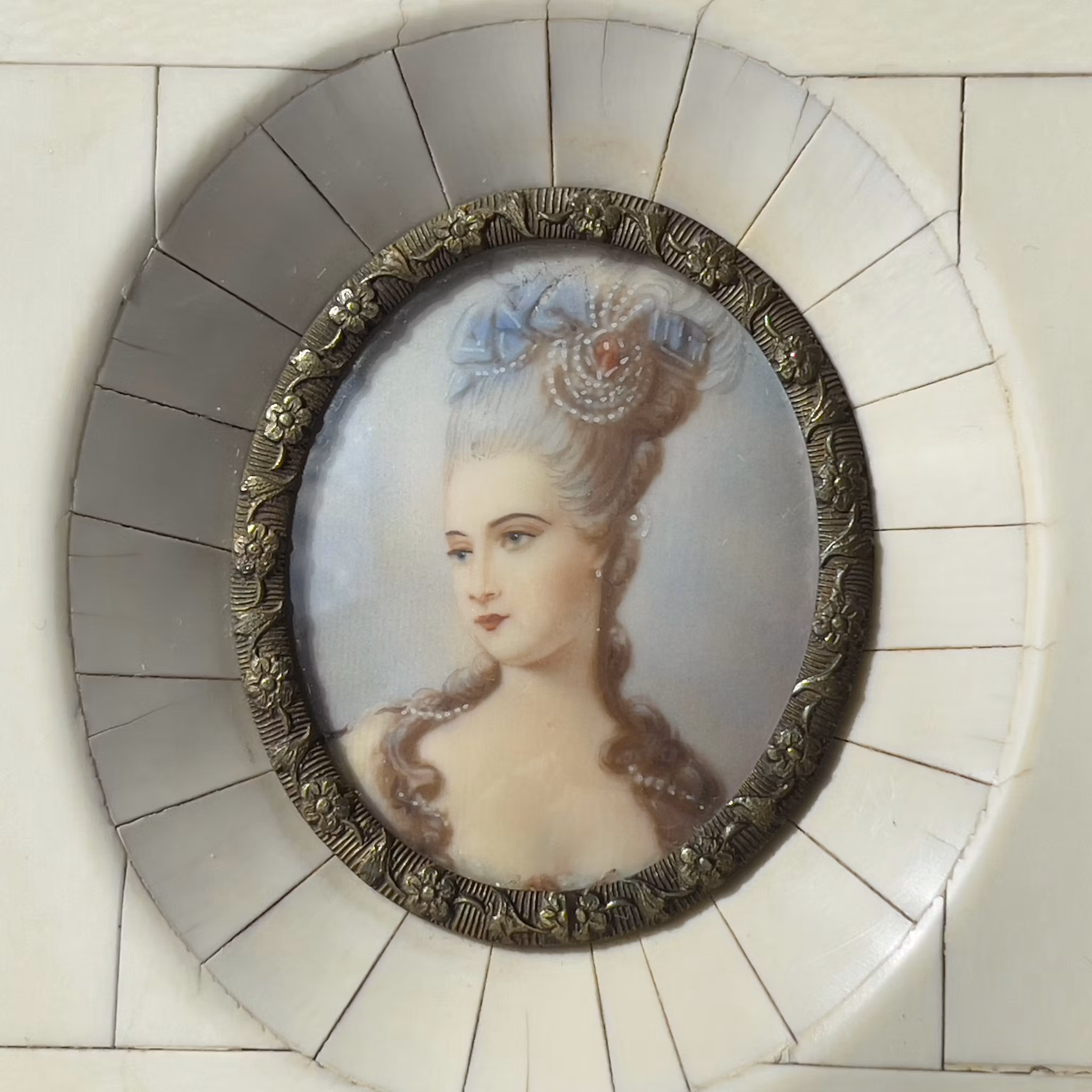 Cuadro en miniatura con firma y marco de hueso. 149,50 € Añadir al carrito Información Antik Miniatyrtavla, ram av ben ca 10 X 9 cm inkl ram