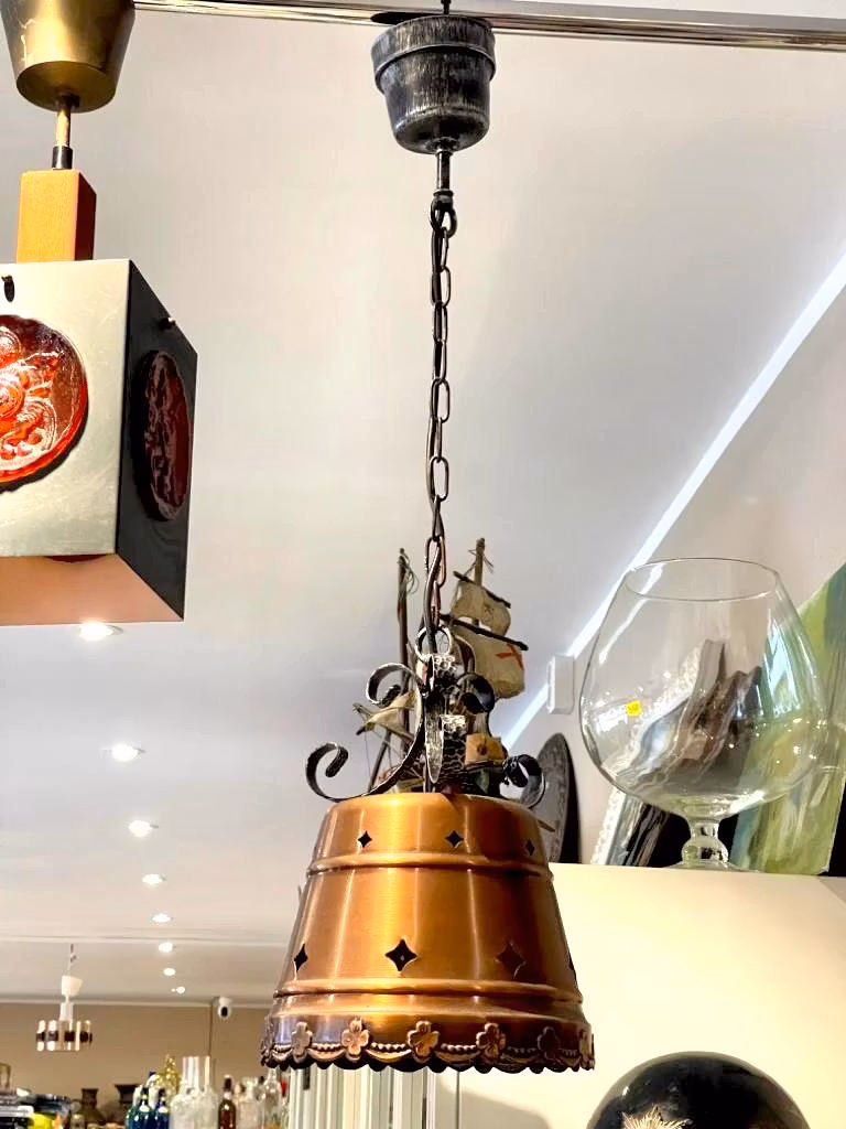 Vintage, Koppar och smidesjärn taklampa 795 kr Añadir al carrito Información Vintage, Koppar och smidesjärn taklampa Höjd från taket: ca 75 cm, Diameter: ca 22 cm