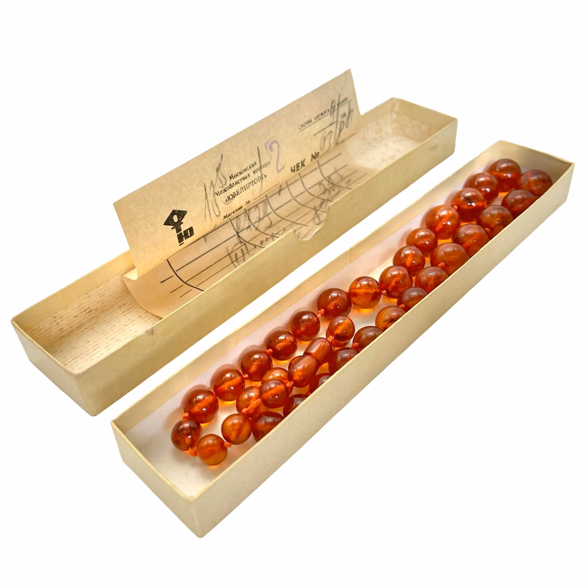 Vintage naturlig bärnstens halsband med inköp kvitto.