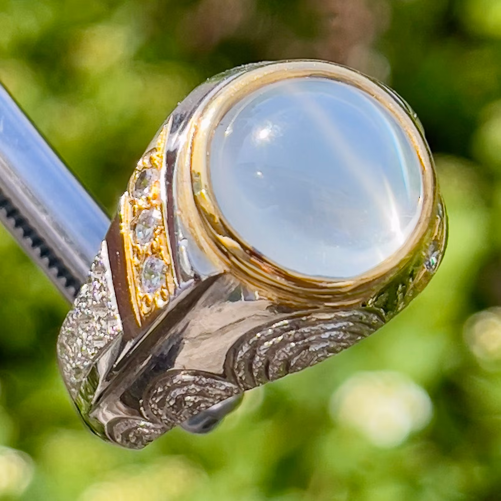 Handgjord silverring med 7,00 karat naturlig obehandlad Månsten, med certifikat