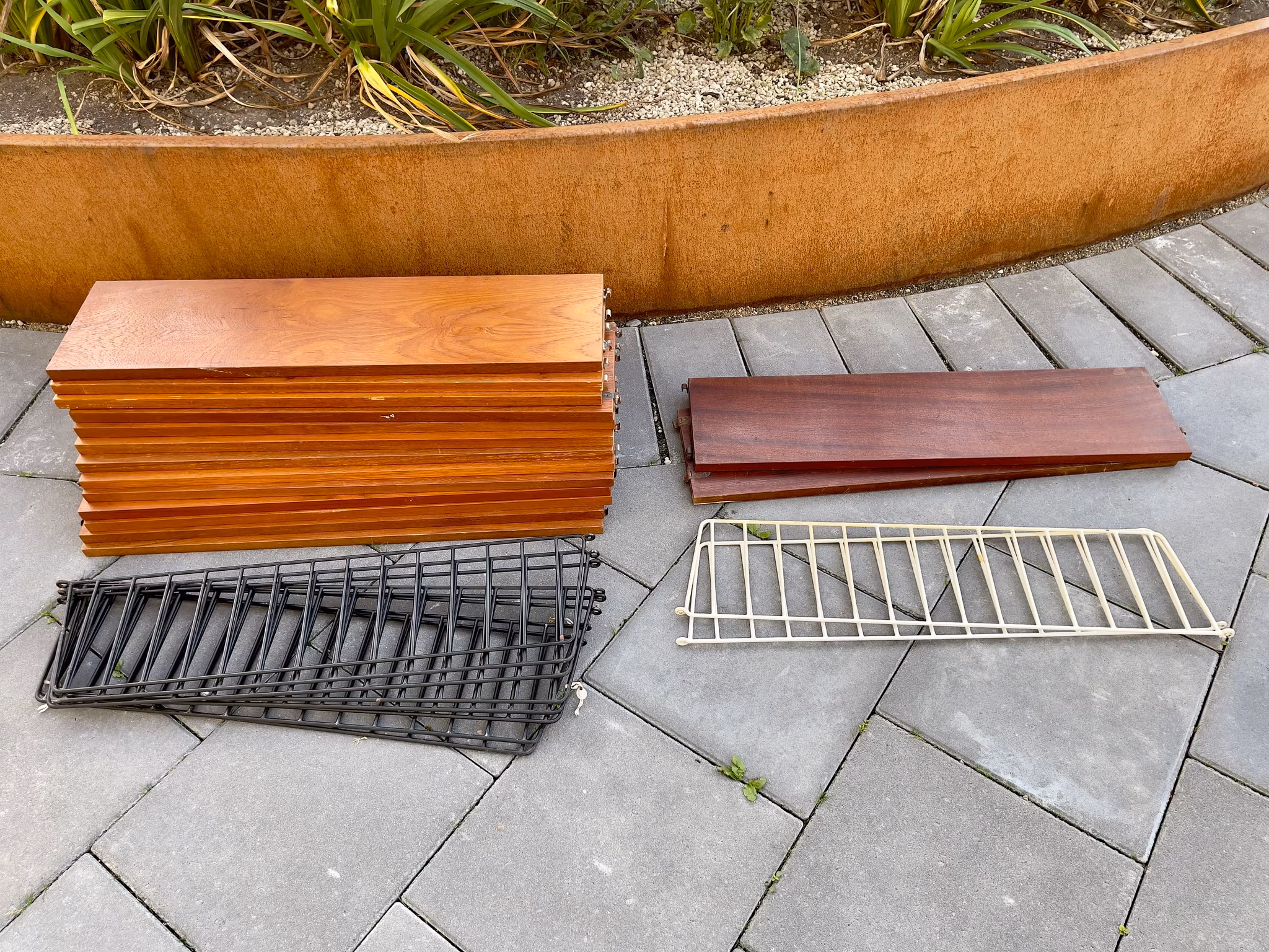 Retro 15 nauhahyllyt 10 päällä 580,00 € Slutsåld Tiedot Retro 15 st klassiska Stringhyllor med 8 svarta gavlar och 2 vita gavlarHyllplanen är 78x20 cm.