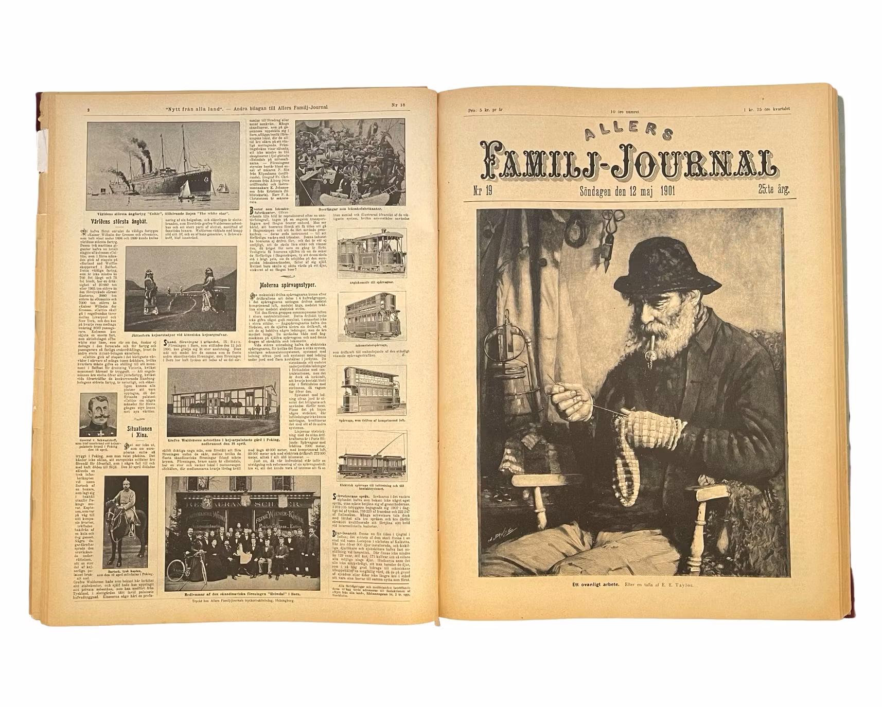 ALLERSIN PERHEEN LEHTI, viikkolehti nro 1, kokonainen vuosi 1901 49,50 € Lisää ostoskoriin Tiedot ALLERS FAMILJ-JOURNAL, Nr 1 veckotidning, komplett årgång 1901
