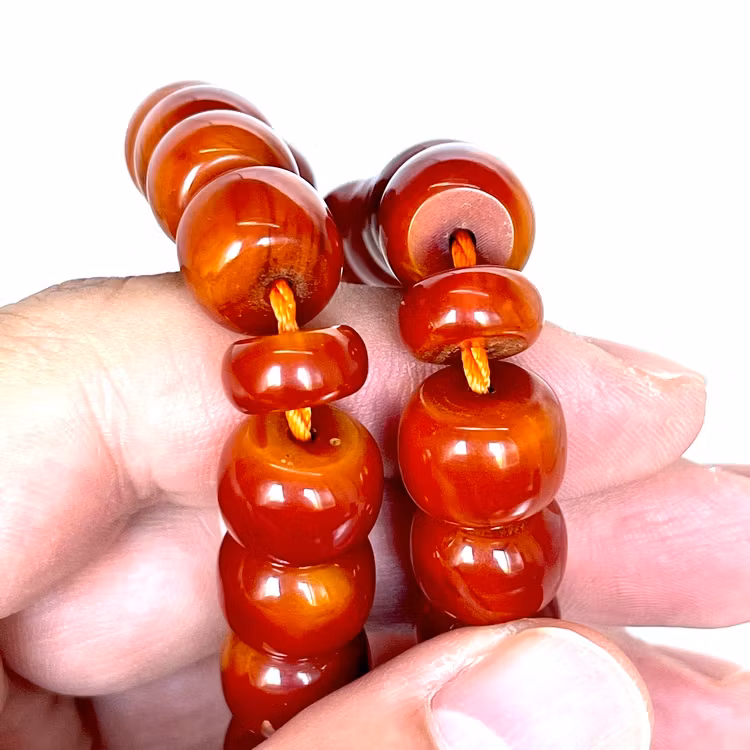 Gammal bakelit radband, 62 g $308.00 Lisää ostoskoriin Tiedot Gammal bakelit radbandTotal vikt: 62,5 gramPärlor (mm) ca 13 x 11 mm