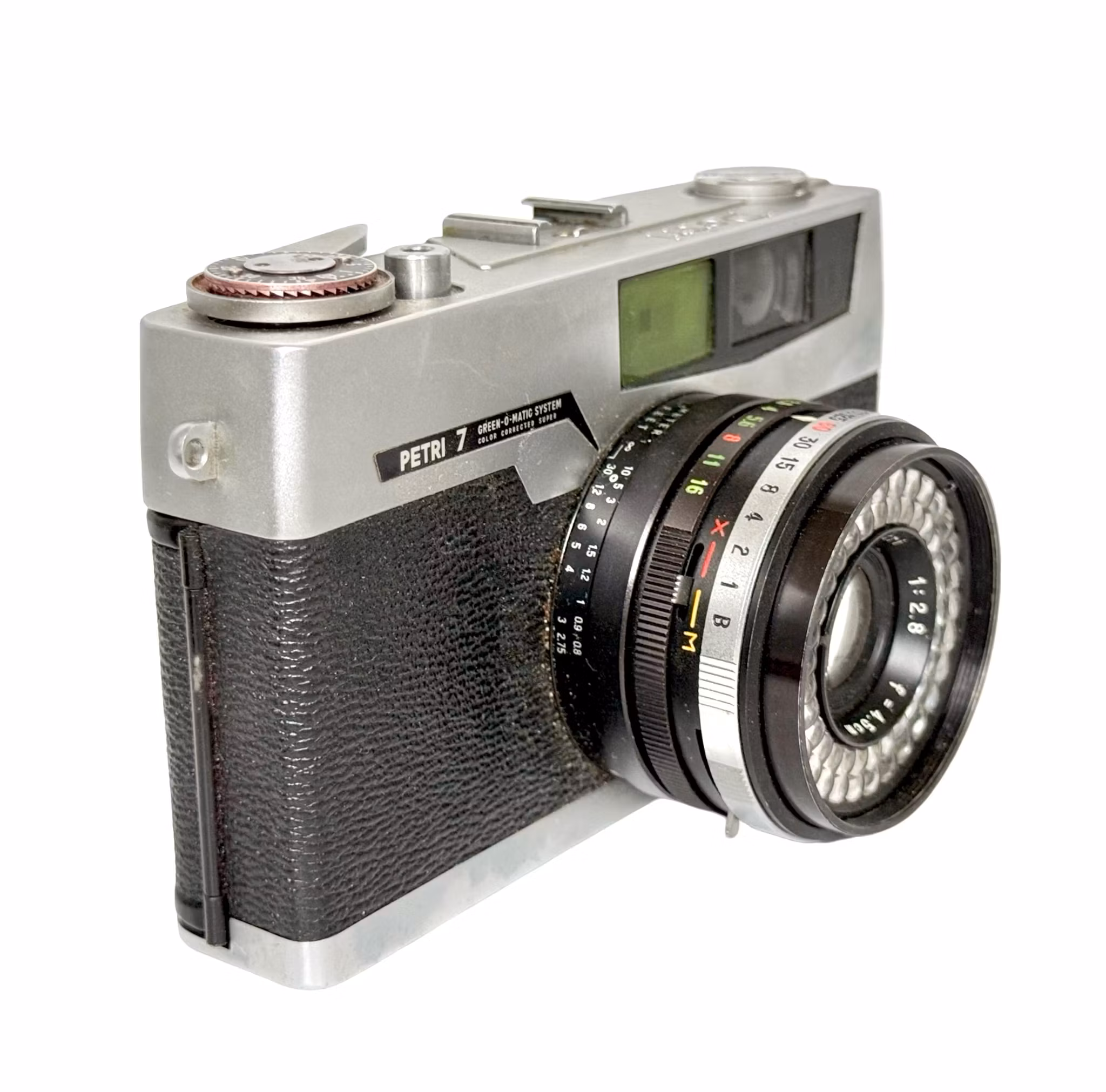 Petri 7 Green-O-Matic -järjestelmäkamera lisävarusteineen