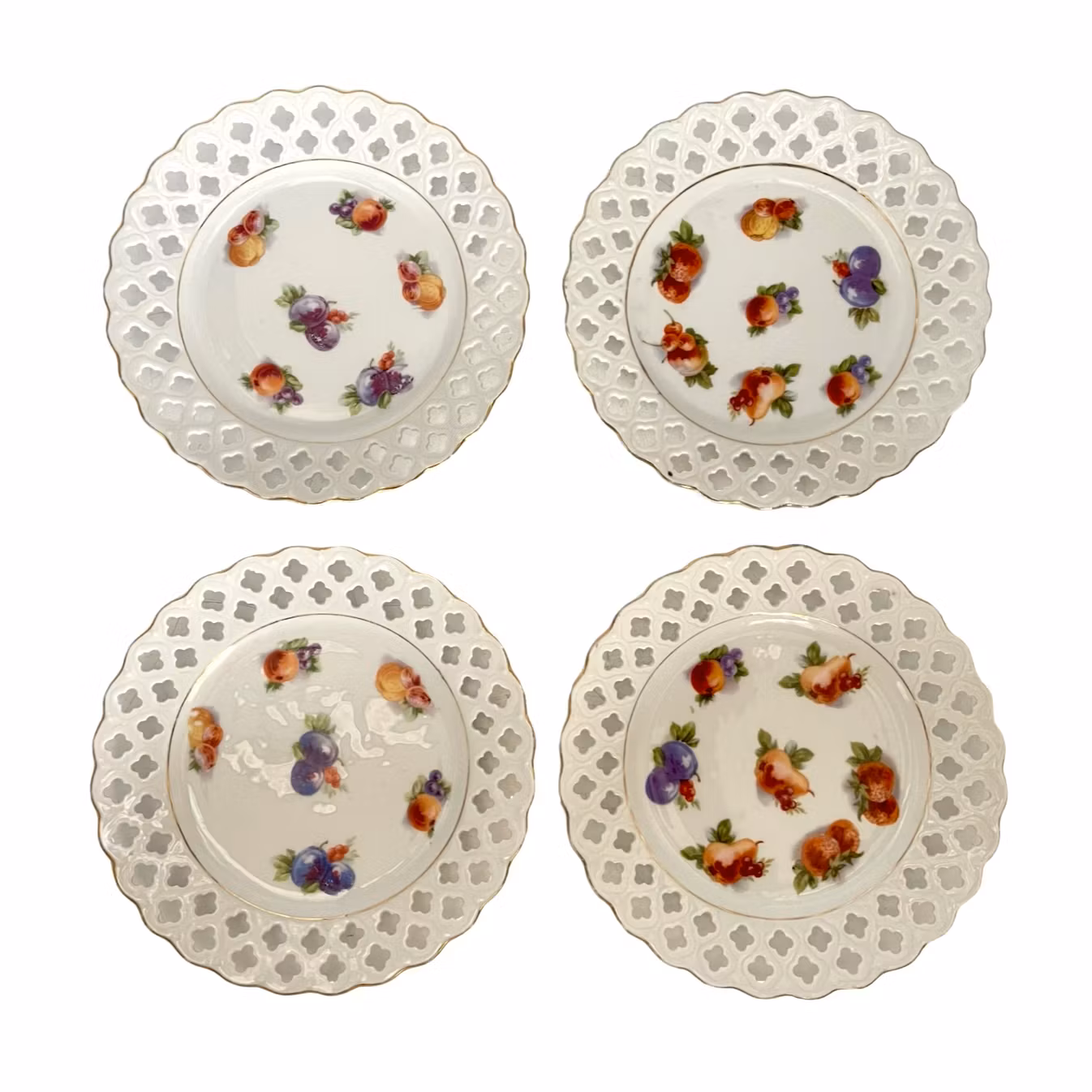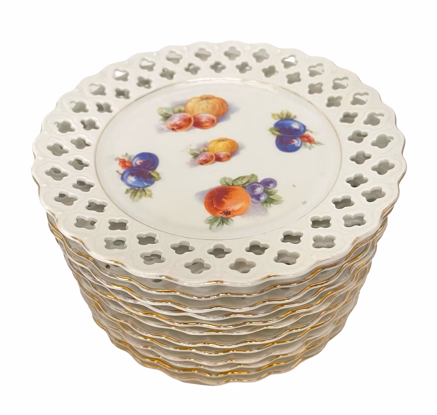 12 st Fruktassietter, Porslin assietter med bruten kant