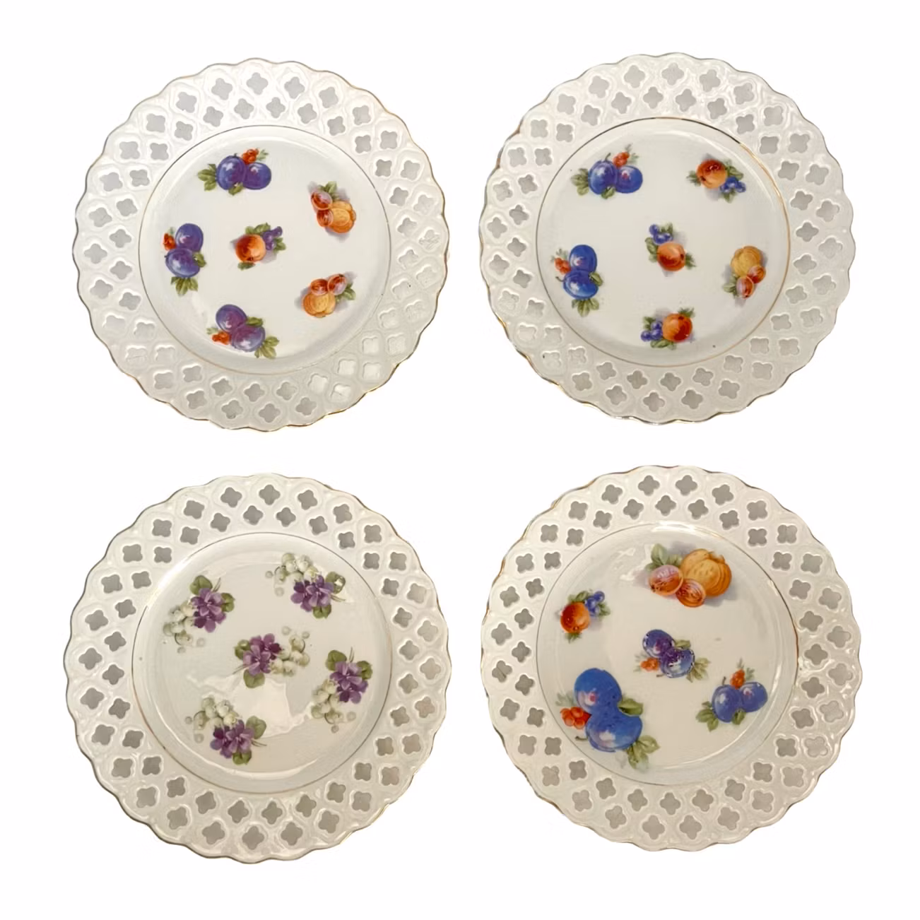 12 kpl vintage-hedelmälautasia, posliinilautasia, joissa on rikkinäinen reuna