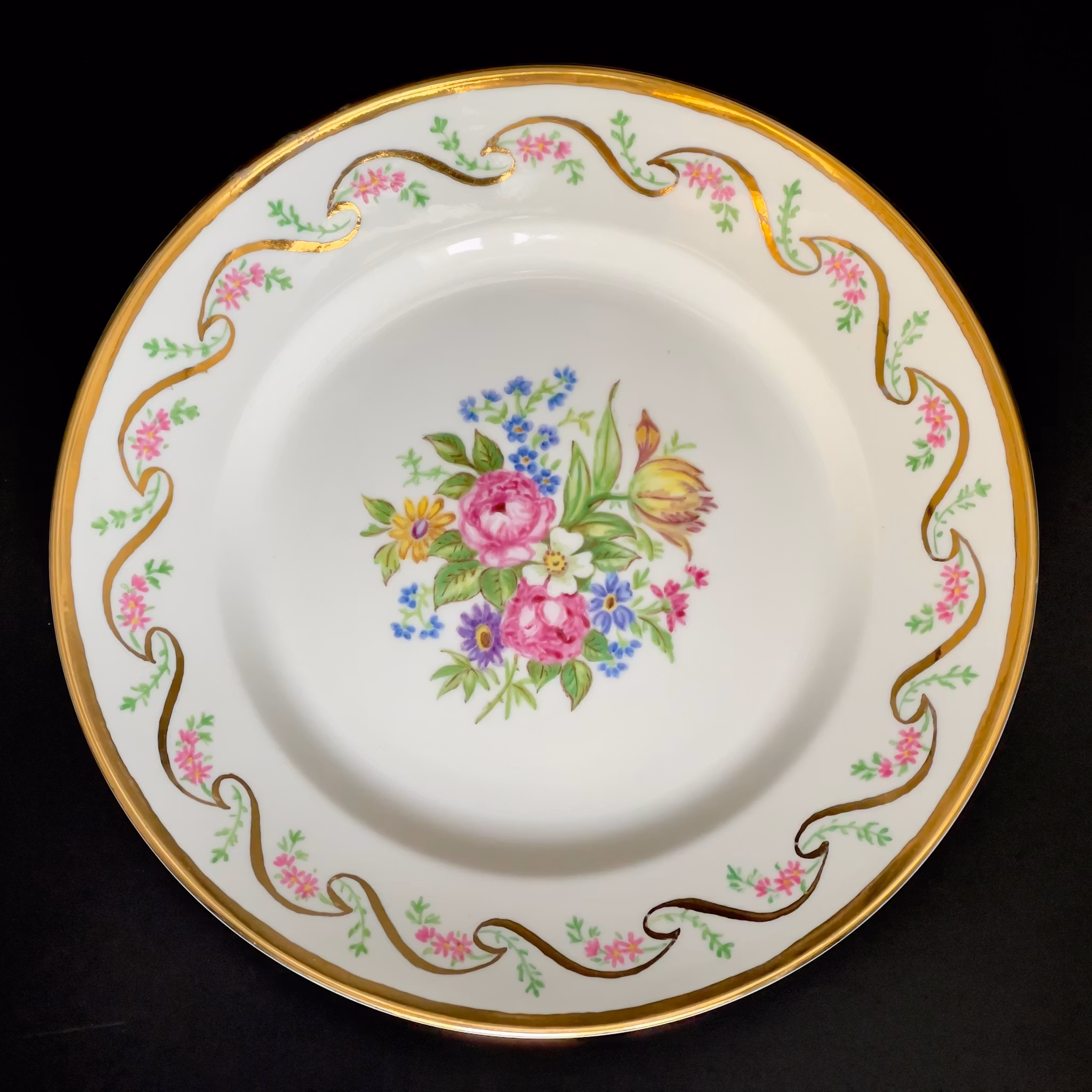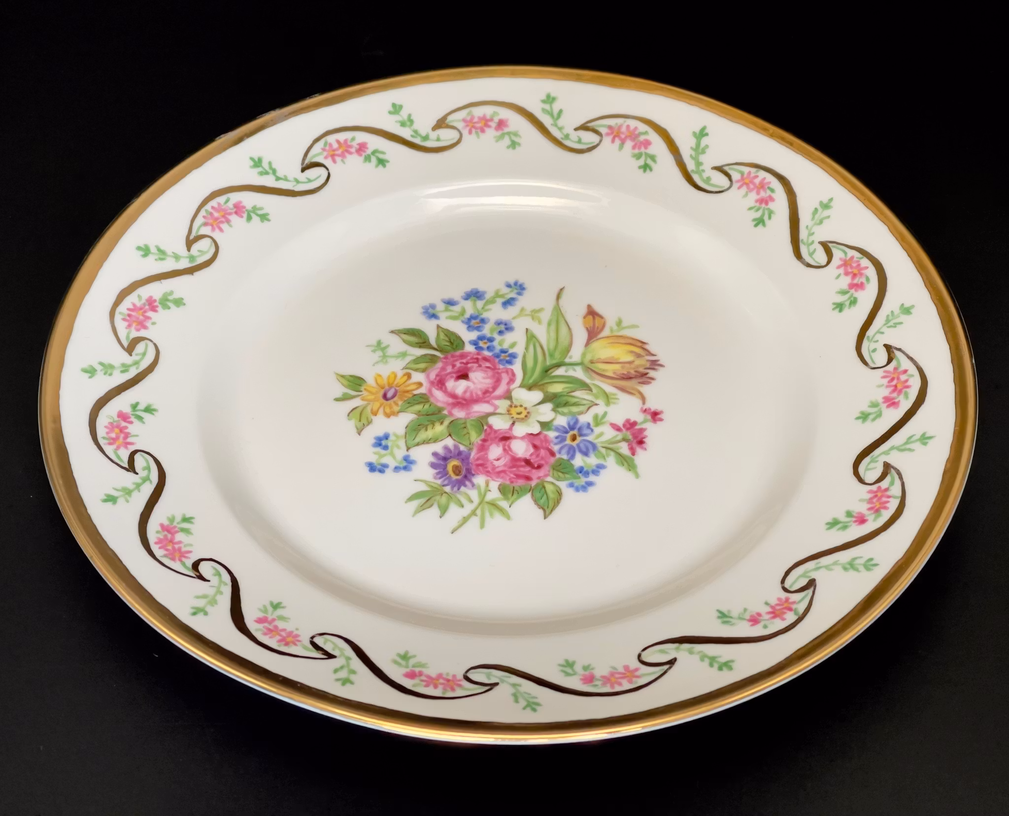 KUNGLIG DANSK, porslin, polykrom dekor av handmålade blommor med guld kant, signerad EM 1981