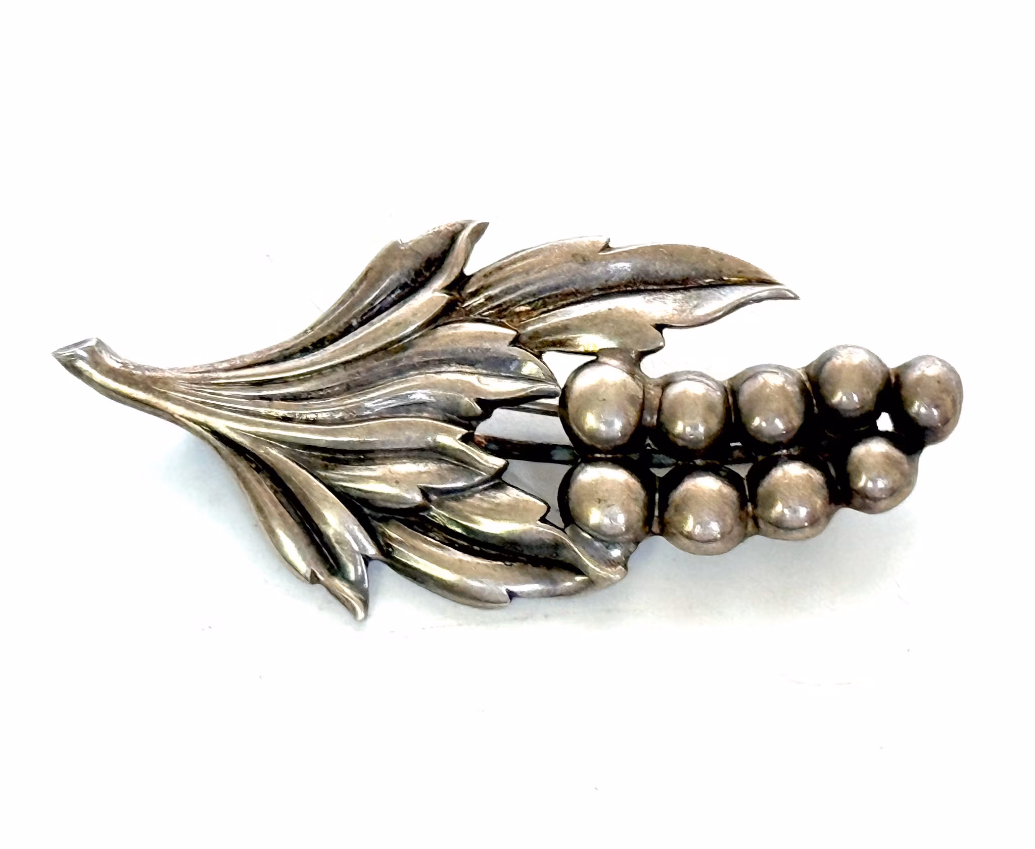 DG&Co hopeinen rintaneula orjanlaakerinlehdillä, 1951 35,00 € Slutsåld Tiedot DG&Co Silver Brosch med järneksblad, 1951Mått: ca 60x26 mm
