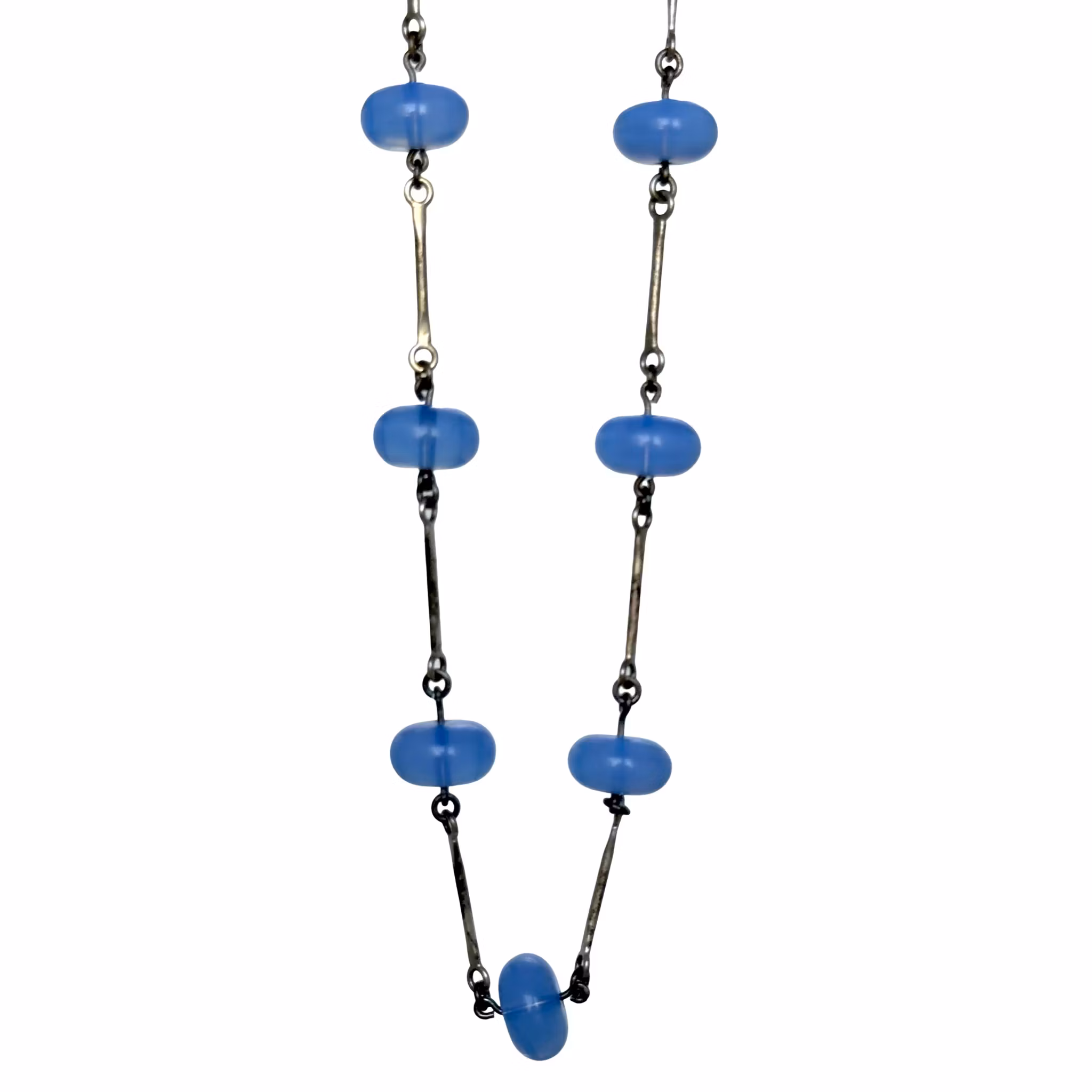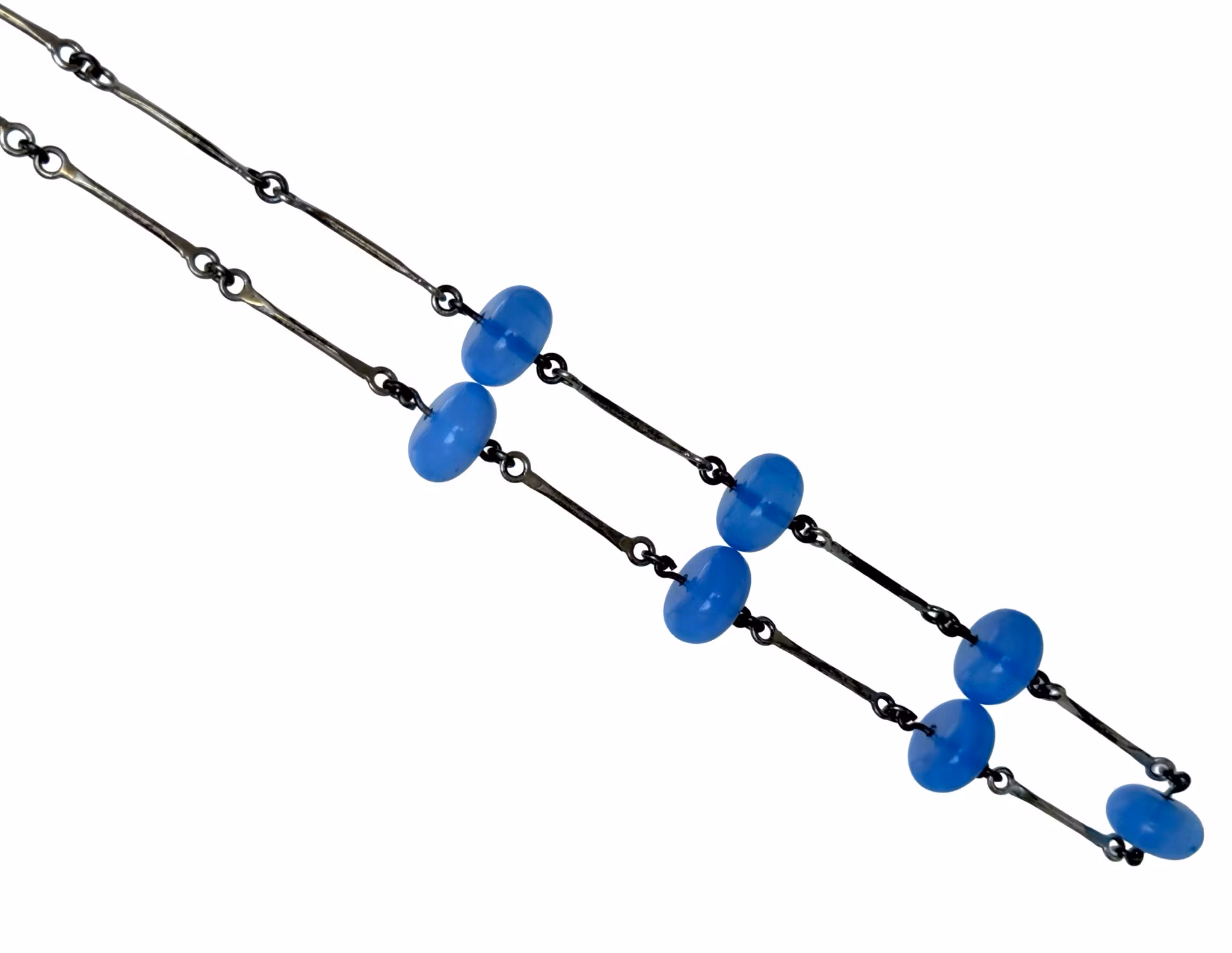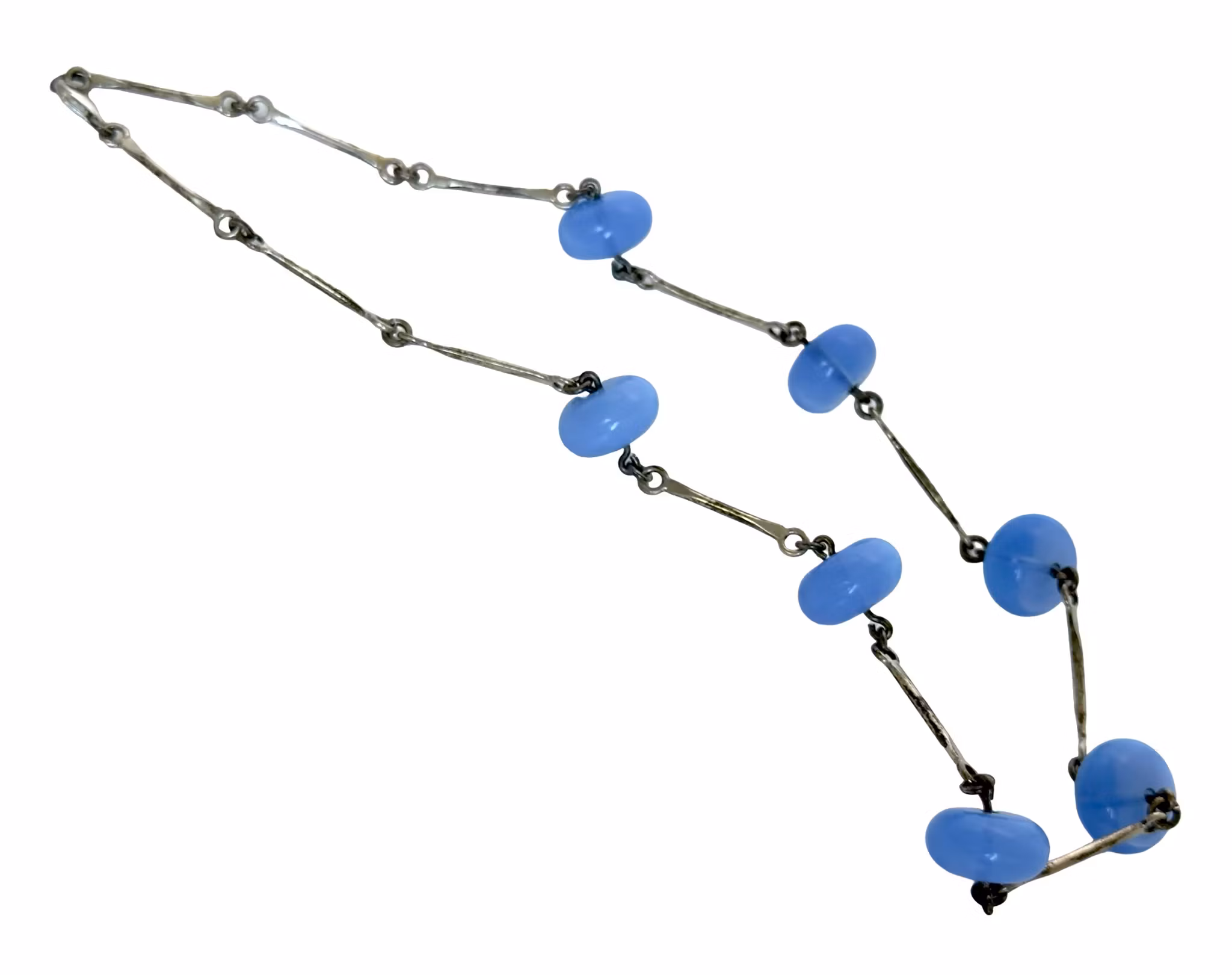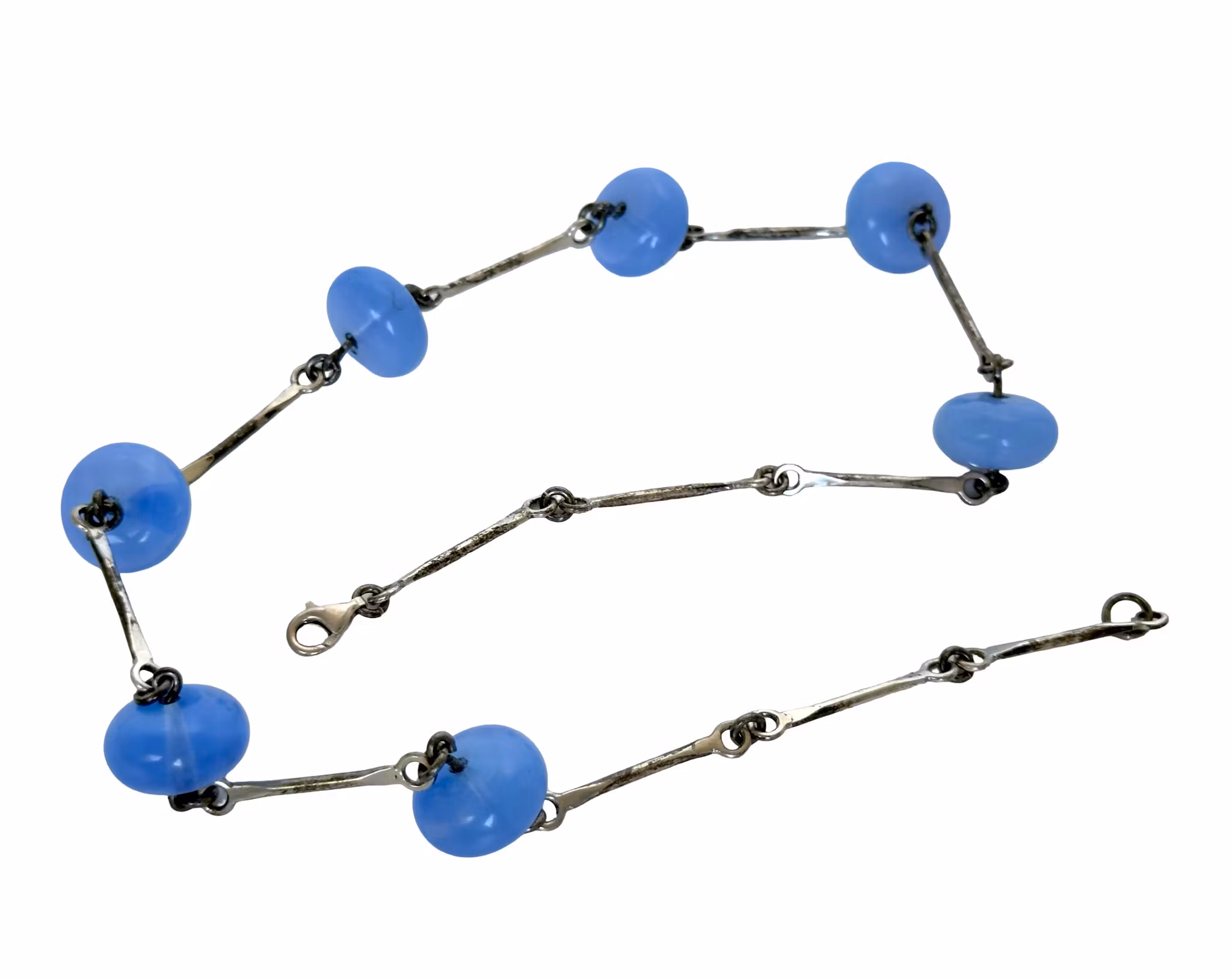 Vintage 925-hopeakaulakoru lasihelmillä