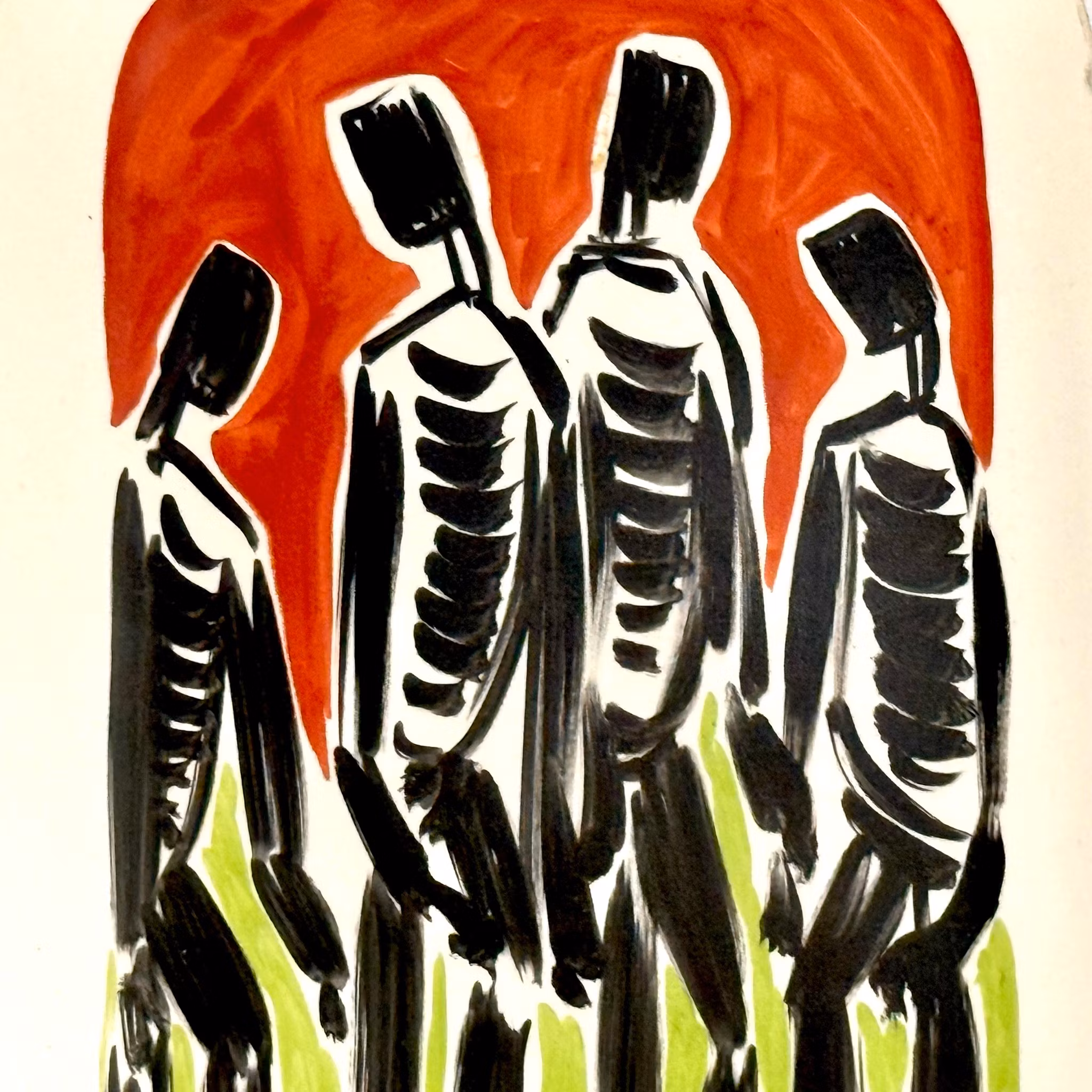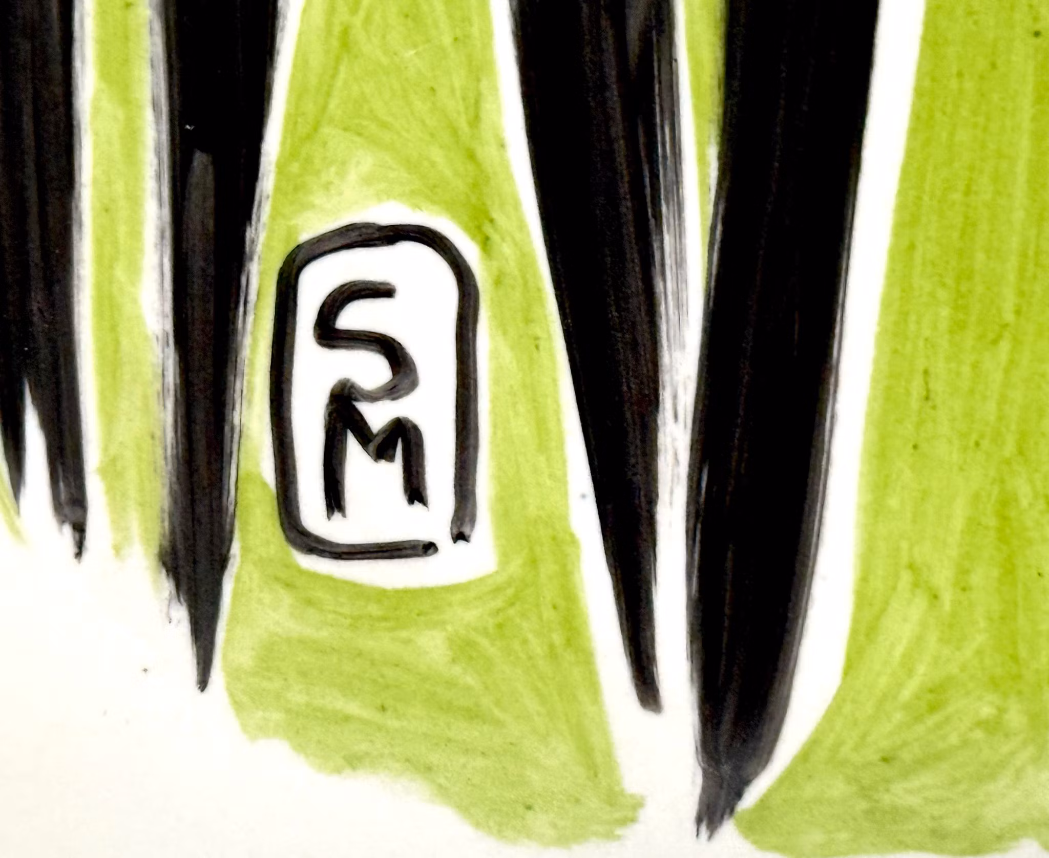 Handmålad keramikskål med modernistiskt mänskligt mönster, svenska företaget Promoto Import, Malmö Porslinsmåleri