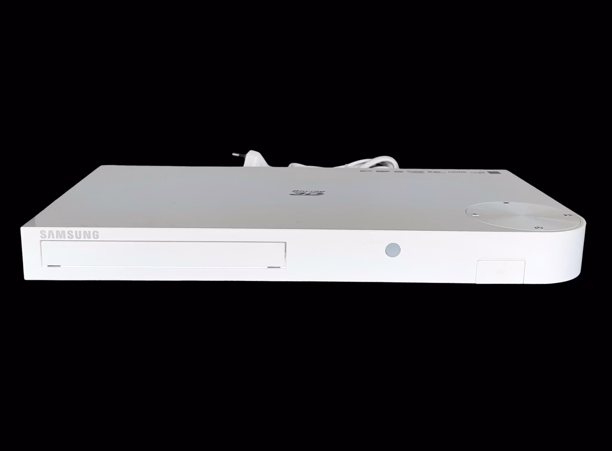 Modern och stilren Samsung Blu ray 3D spelare i vit slim design. Spelaren stödjer Blu ray, DVD och DivX HD och levererar upp till 1080p Full HD upplösning. Perfekt för hemmabio eller som extra mediaspelare.