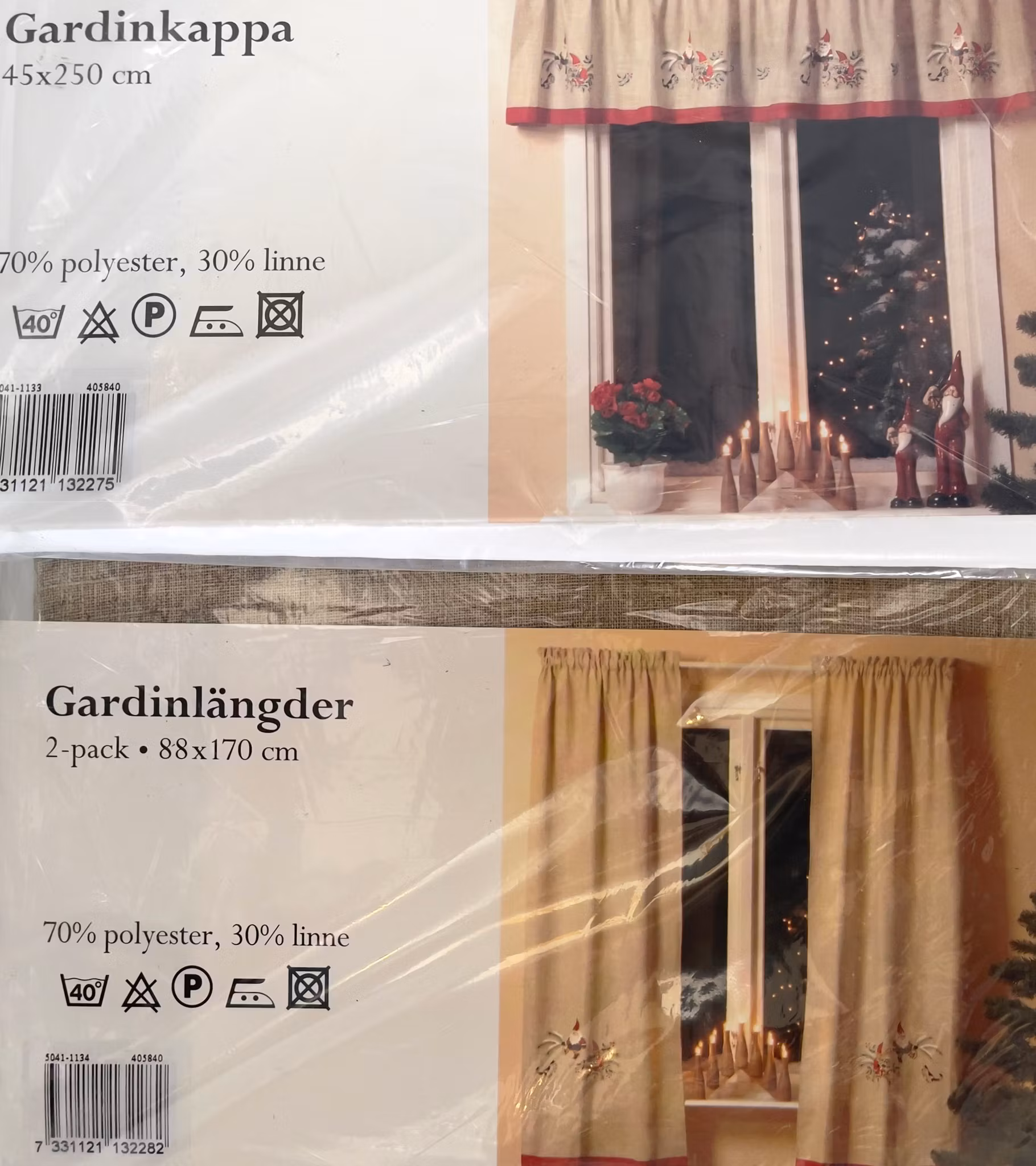 5 pezzi, lunghezze di tende con aste per tende, tovaglie, veneziane ecc. 99,50 € Aggiungi al carrello Informazione Gardinlängder med Gardinkappa, Borddukar, Stores m.m.Inplastad, Oanvänt.