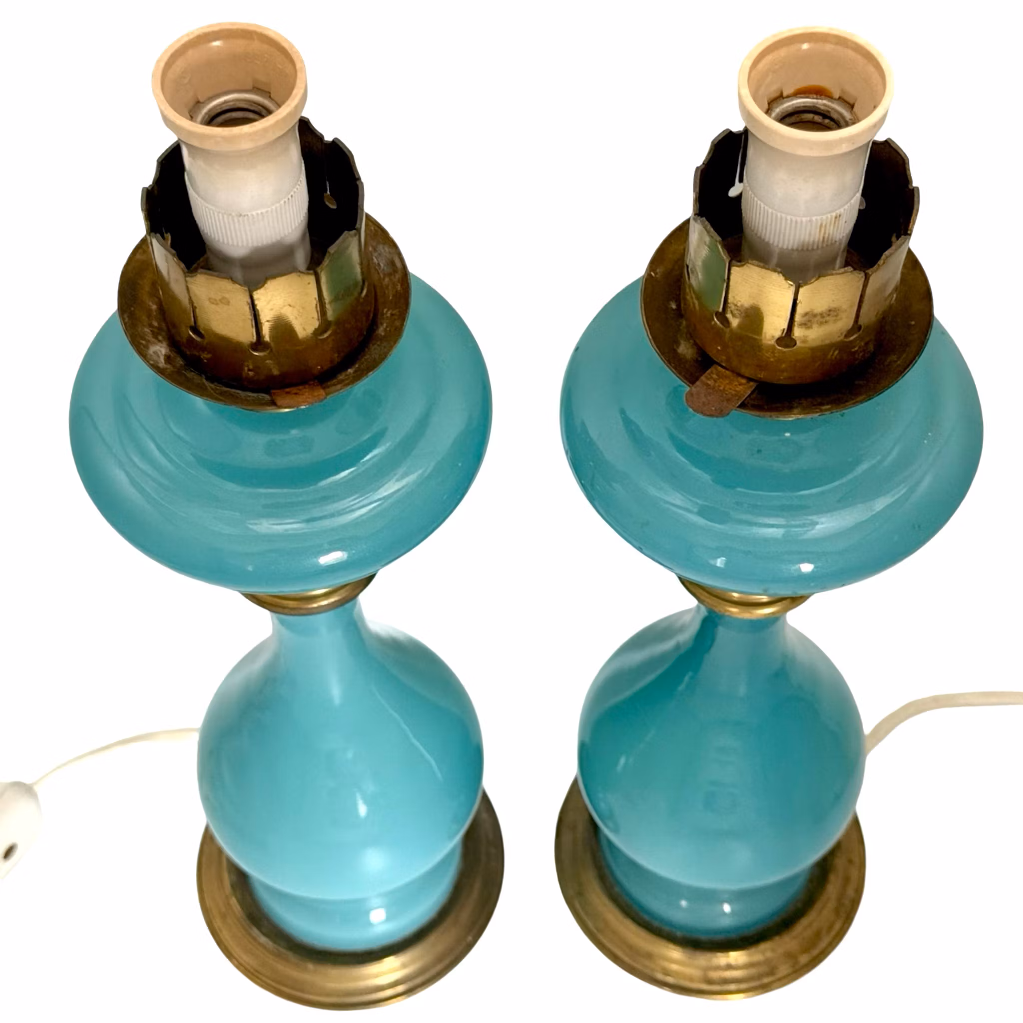 Lampade da tavolo antiche in vetro opalino blu, stile Napoleone III