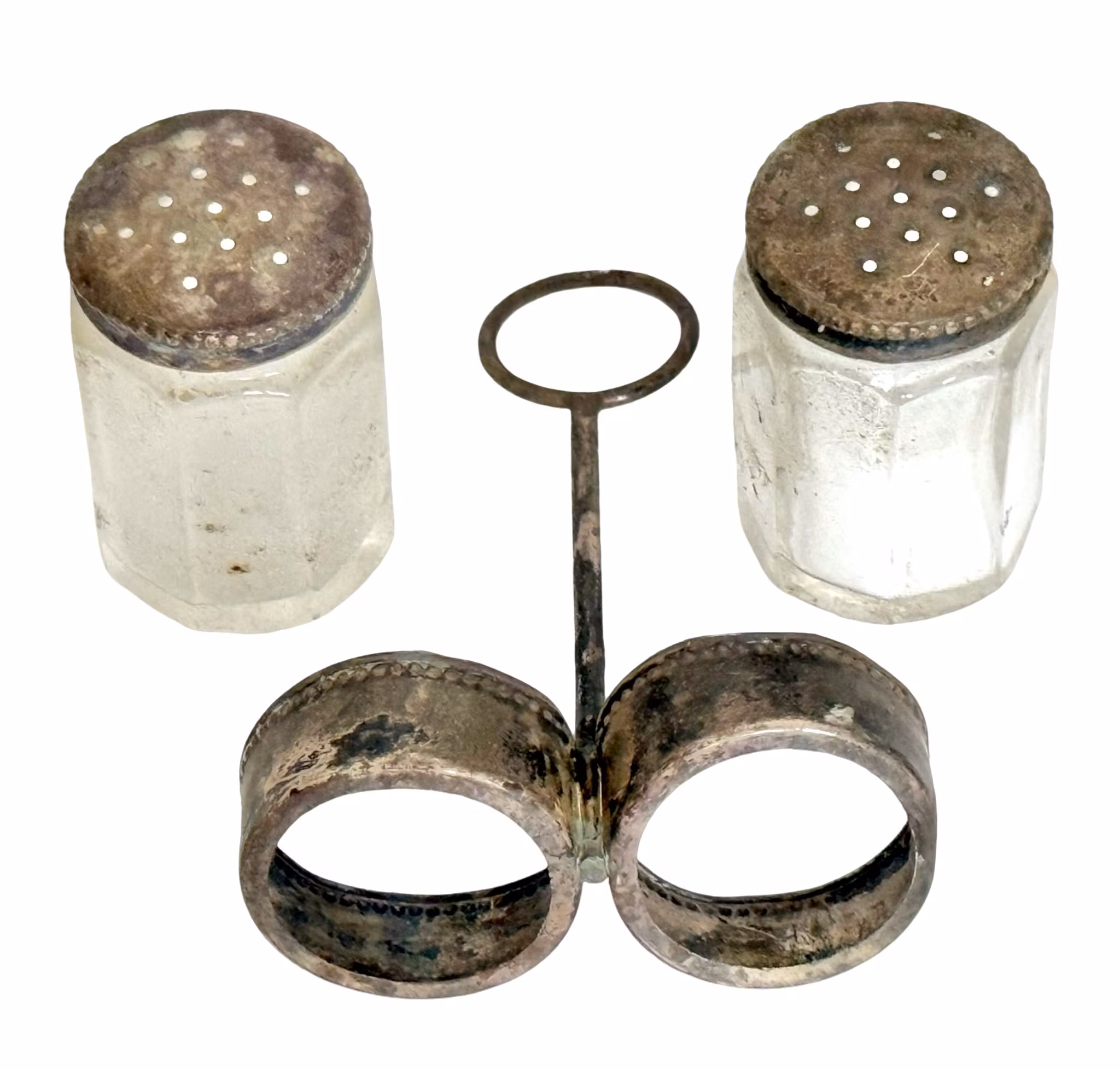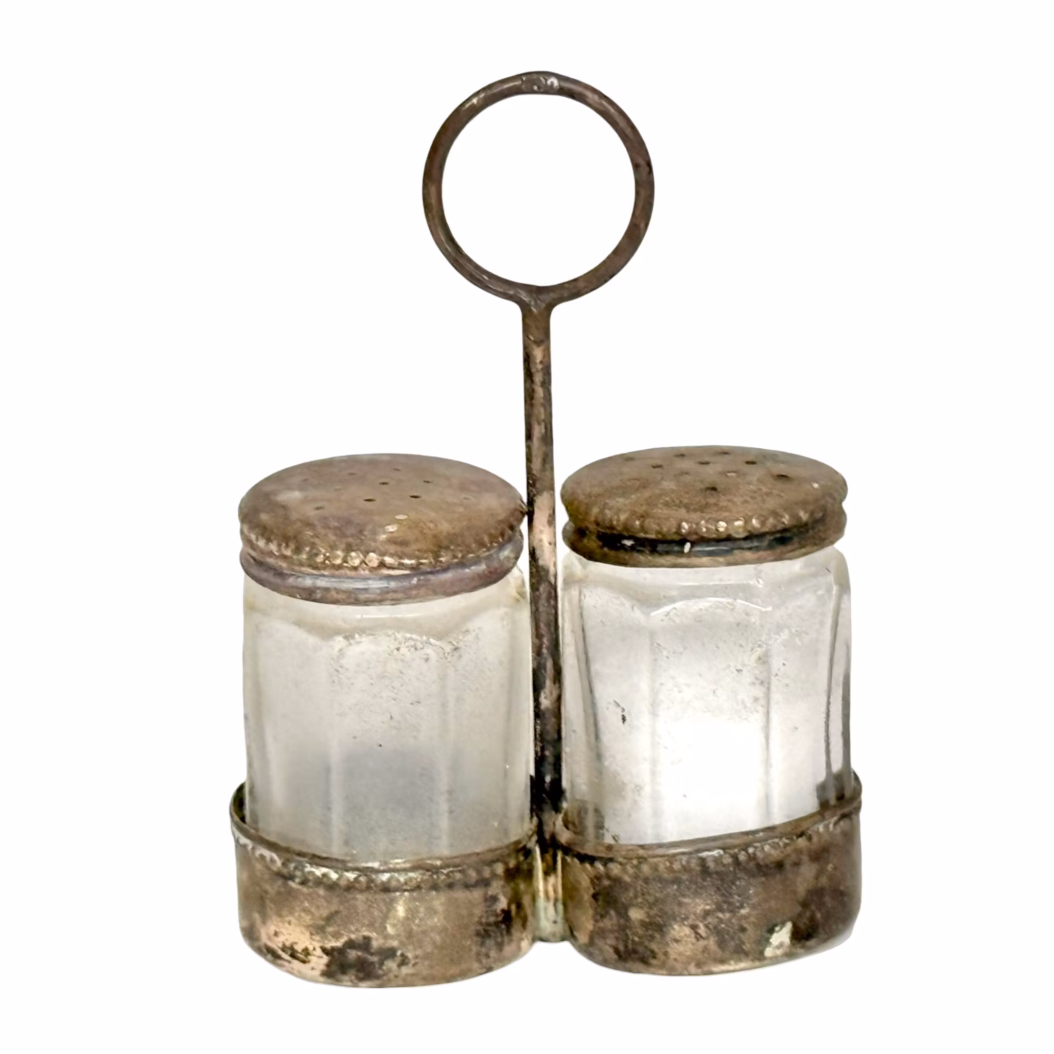Salt och pepparkar set i silver och glas med behållare i 835 silver