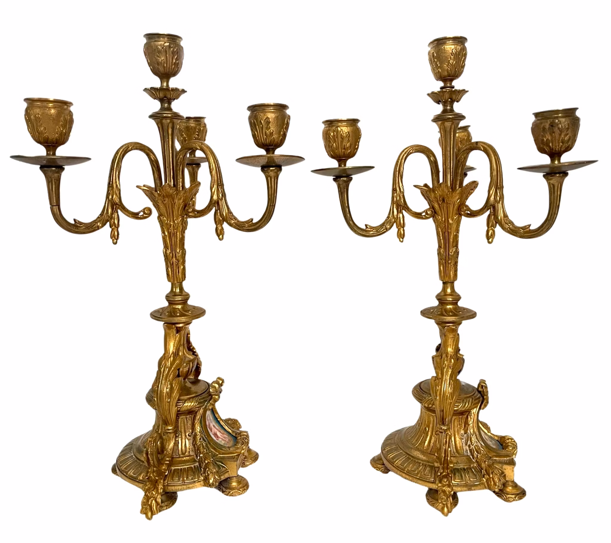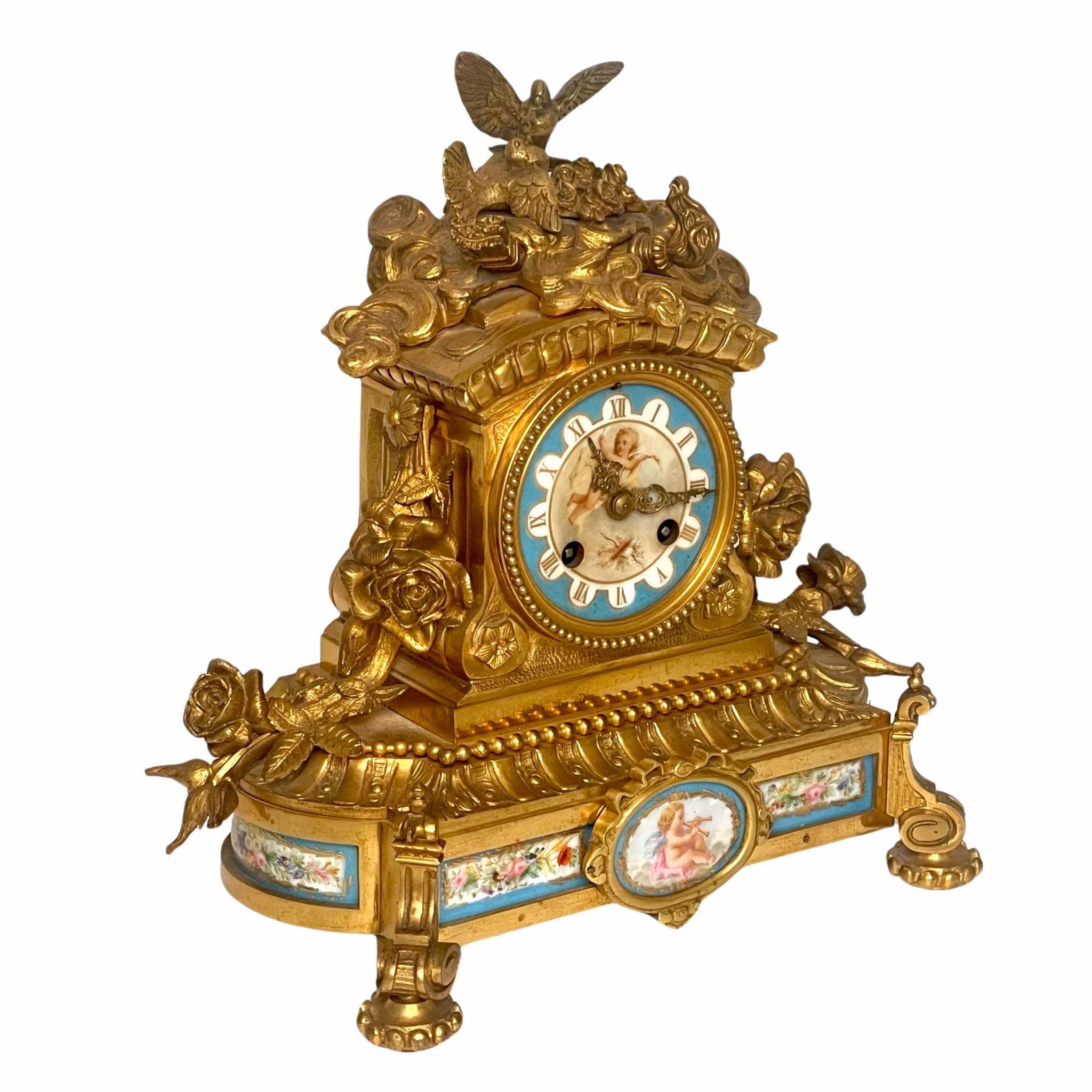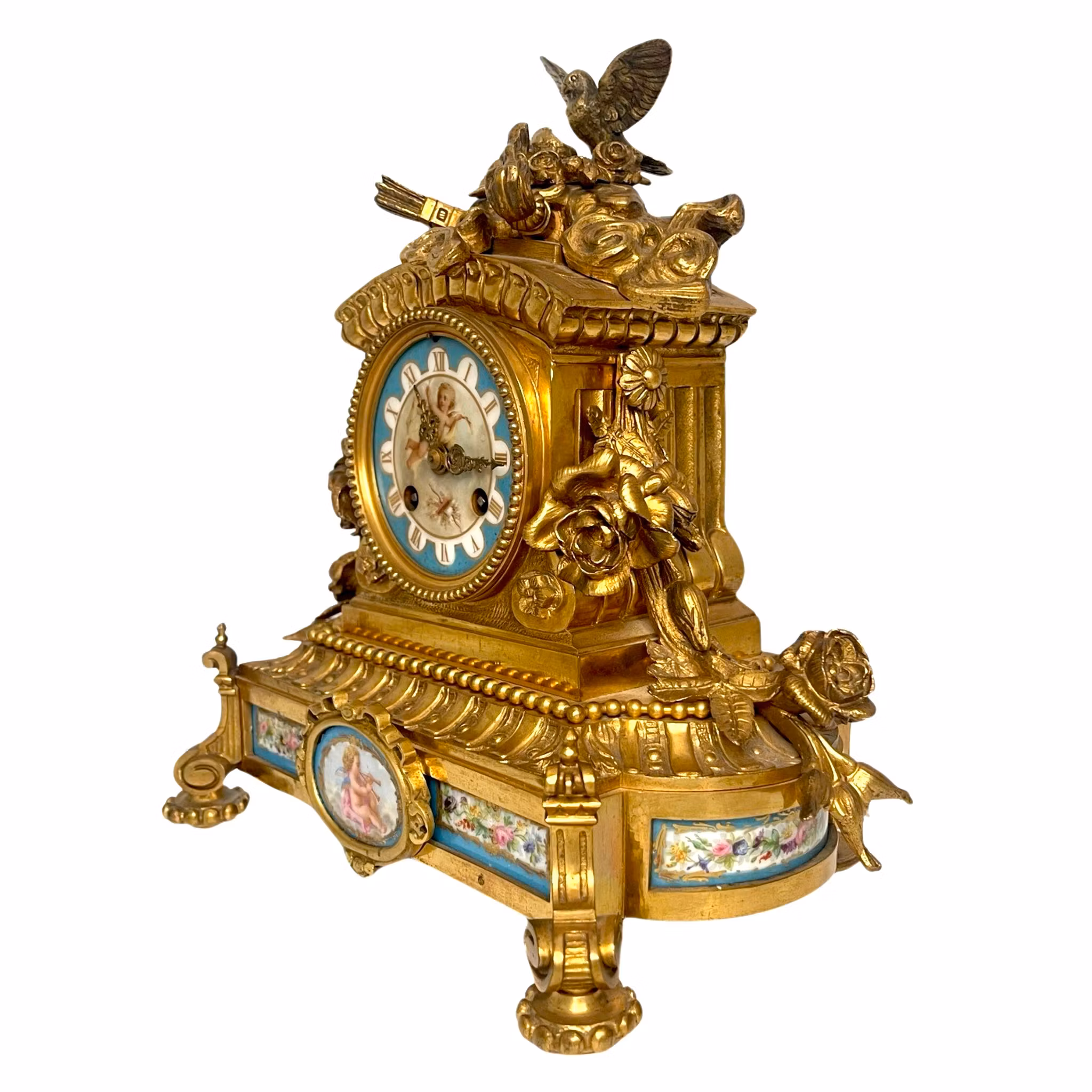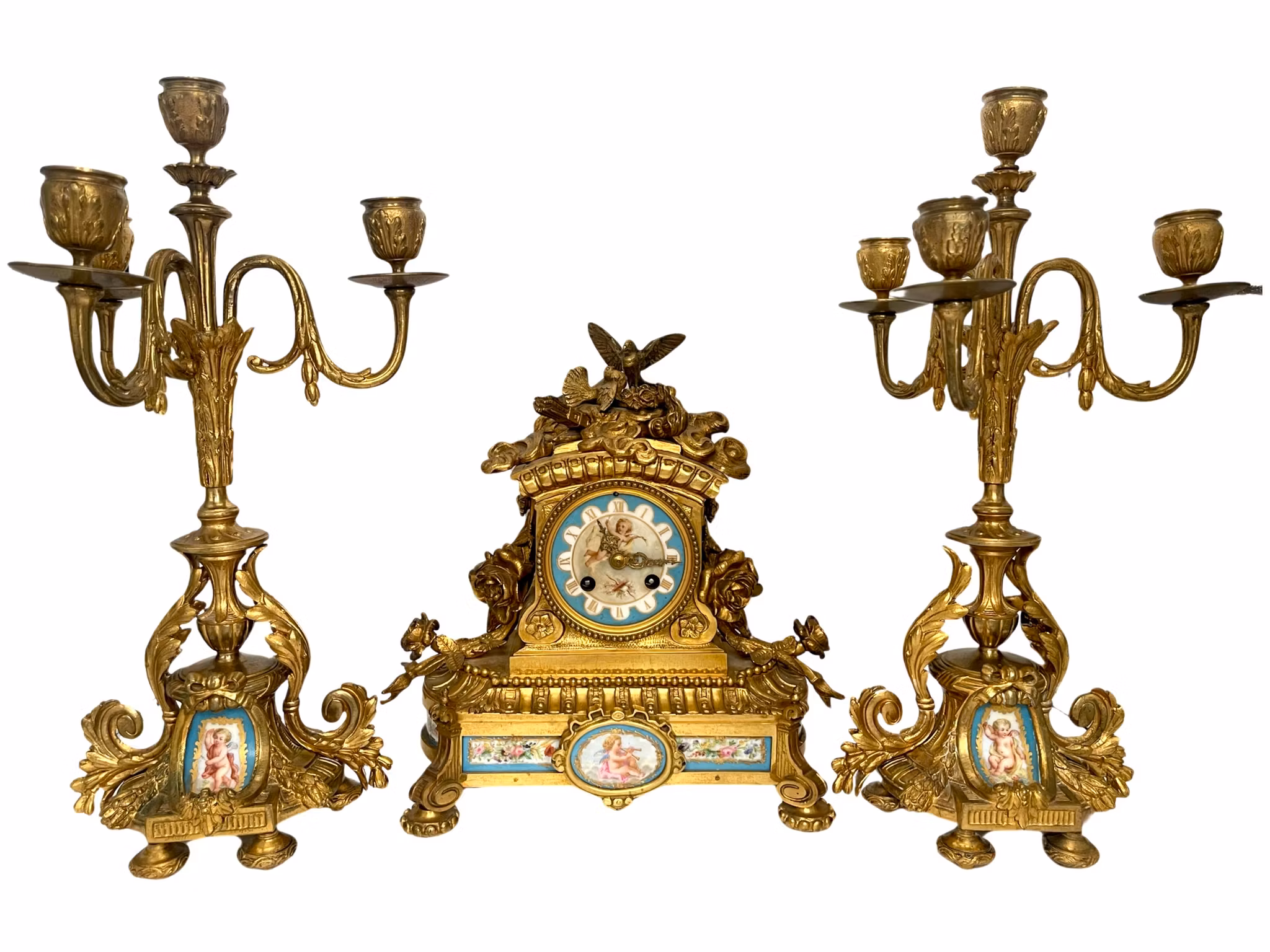 Sèvres Porslin & Mässing Klocka Och Kandelaber Skapad Under 1800-Talet, Signerad