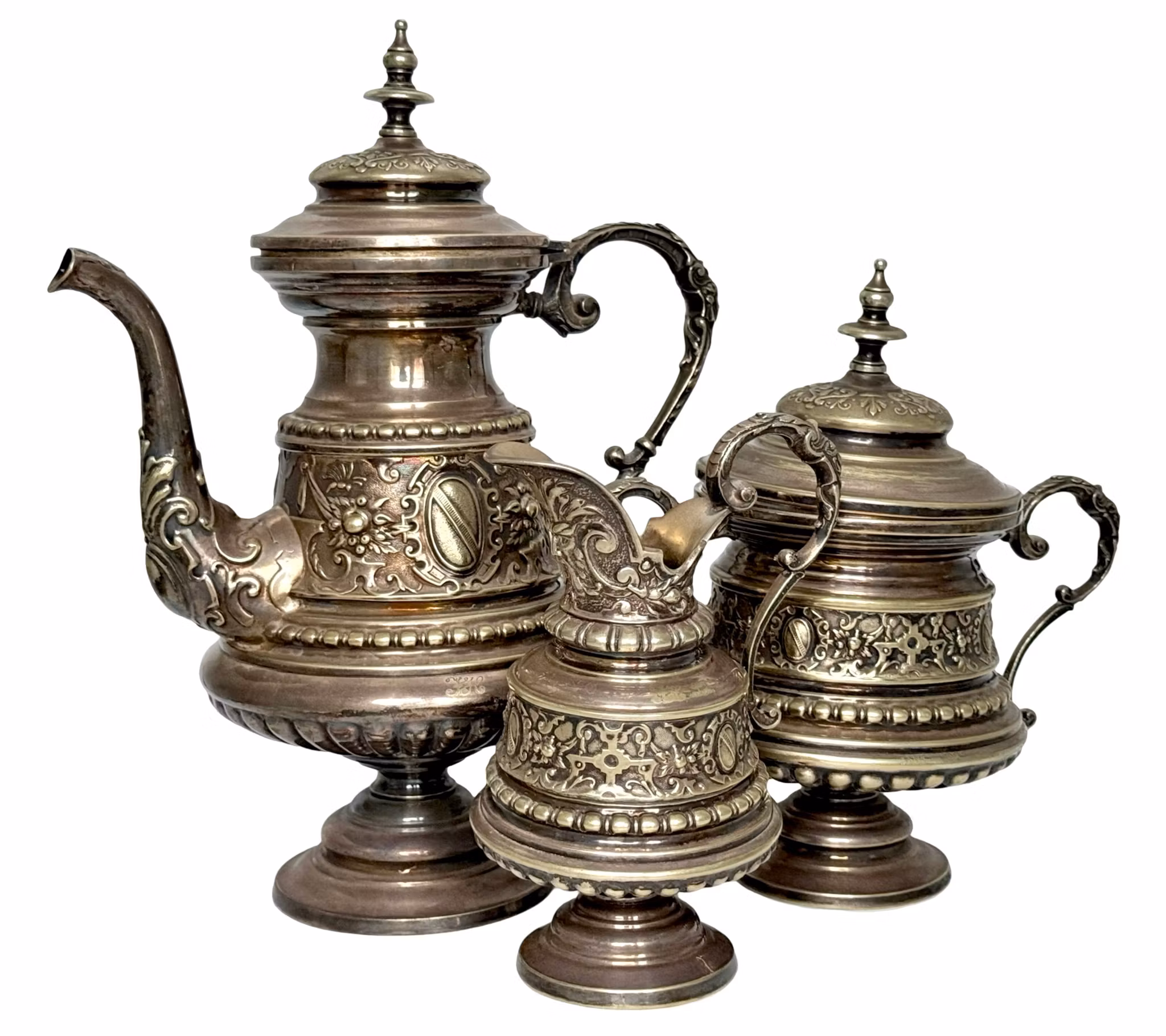 3 delar, Kaffekanna, Skål med lock, Gräddkanna, nysilver, 1800-talet