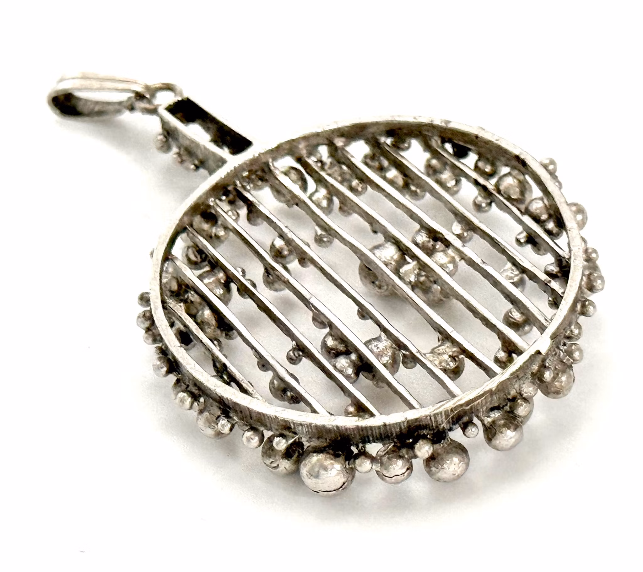 Hanger in zilver, Fins design 79,50 € Slutsåld Informatie Hänge i silver, Finsk designStorlek hänge: ca 6,5 x 4,0 cm (inkl. ring), Vikt: ca 15 g.
