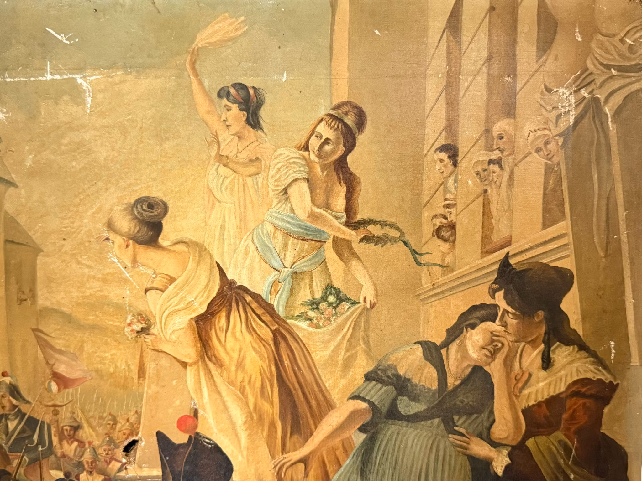 Onbekende kunstenaar, olieverf op doek, terugkeer van de overwinnaar, Frankrijk eind 18e eeuw, gesigneerd