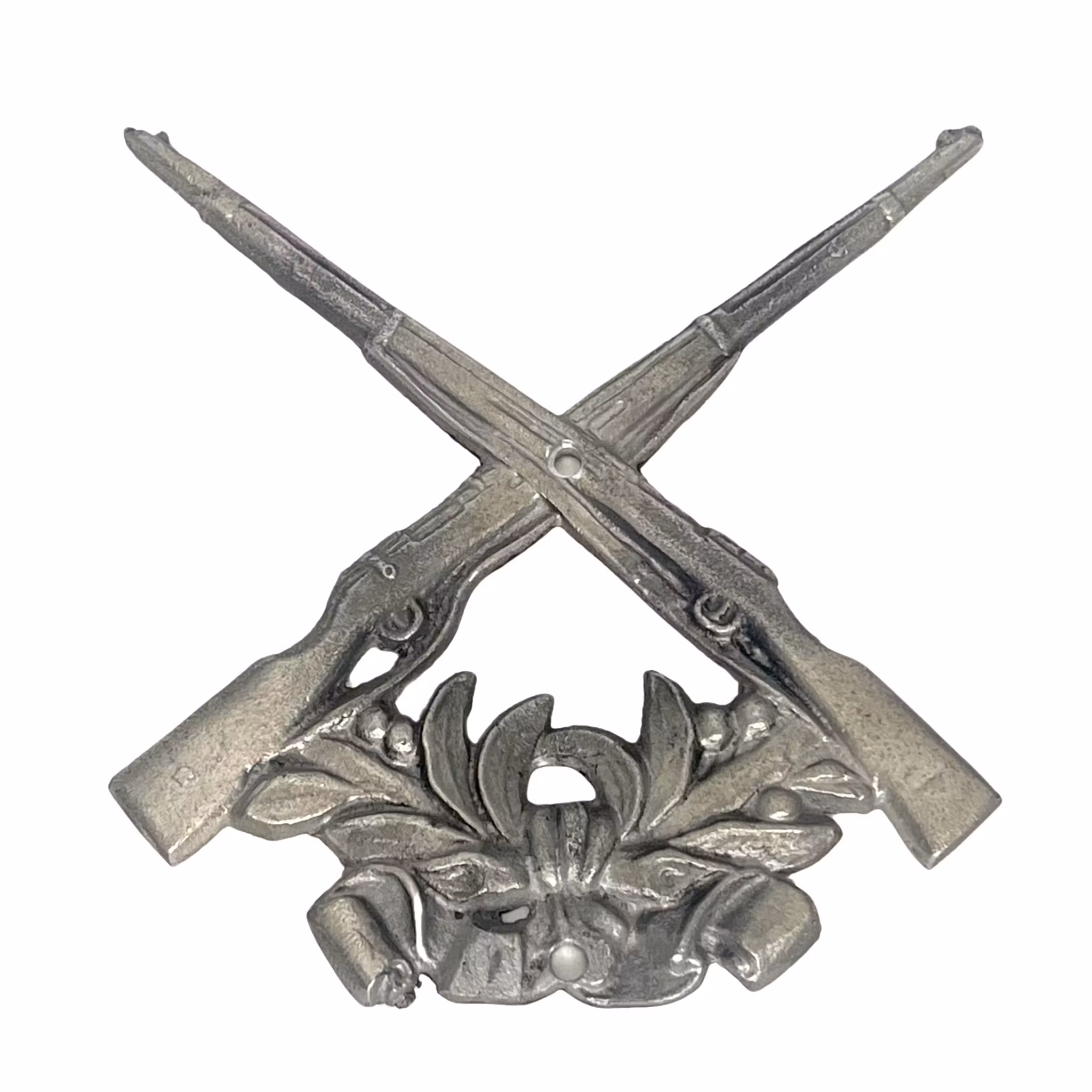Schietvaardigheid, voorstellende twee gekruiste geweren bovenop een lauwerkrans, tin