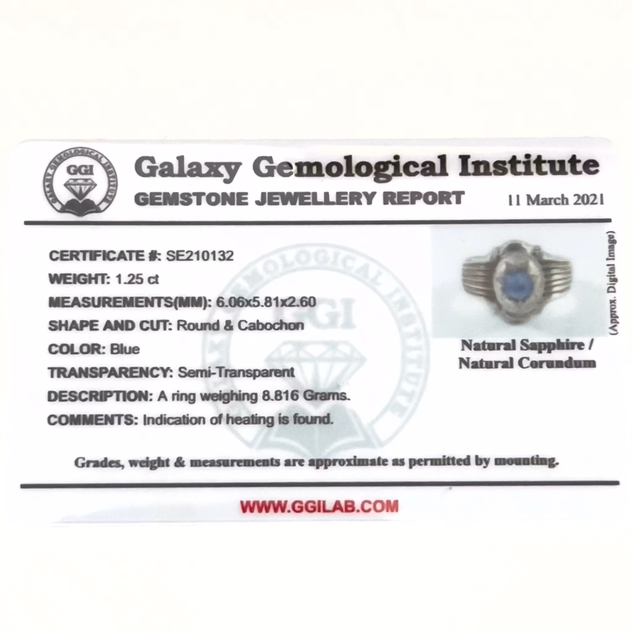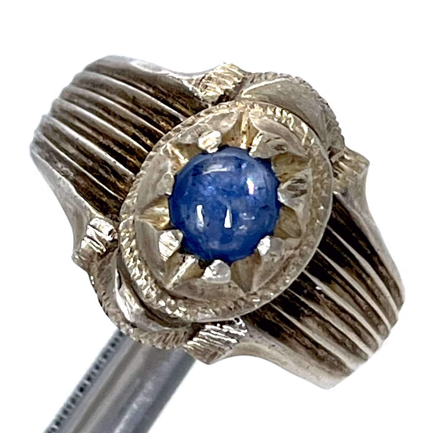 1,25 Karat naturlig blå safir, handgjord silverring med certifikat