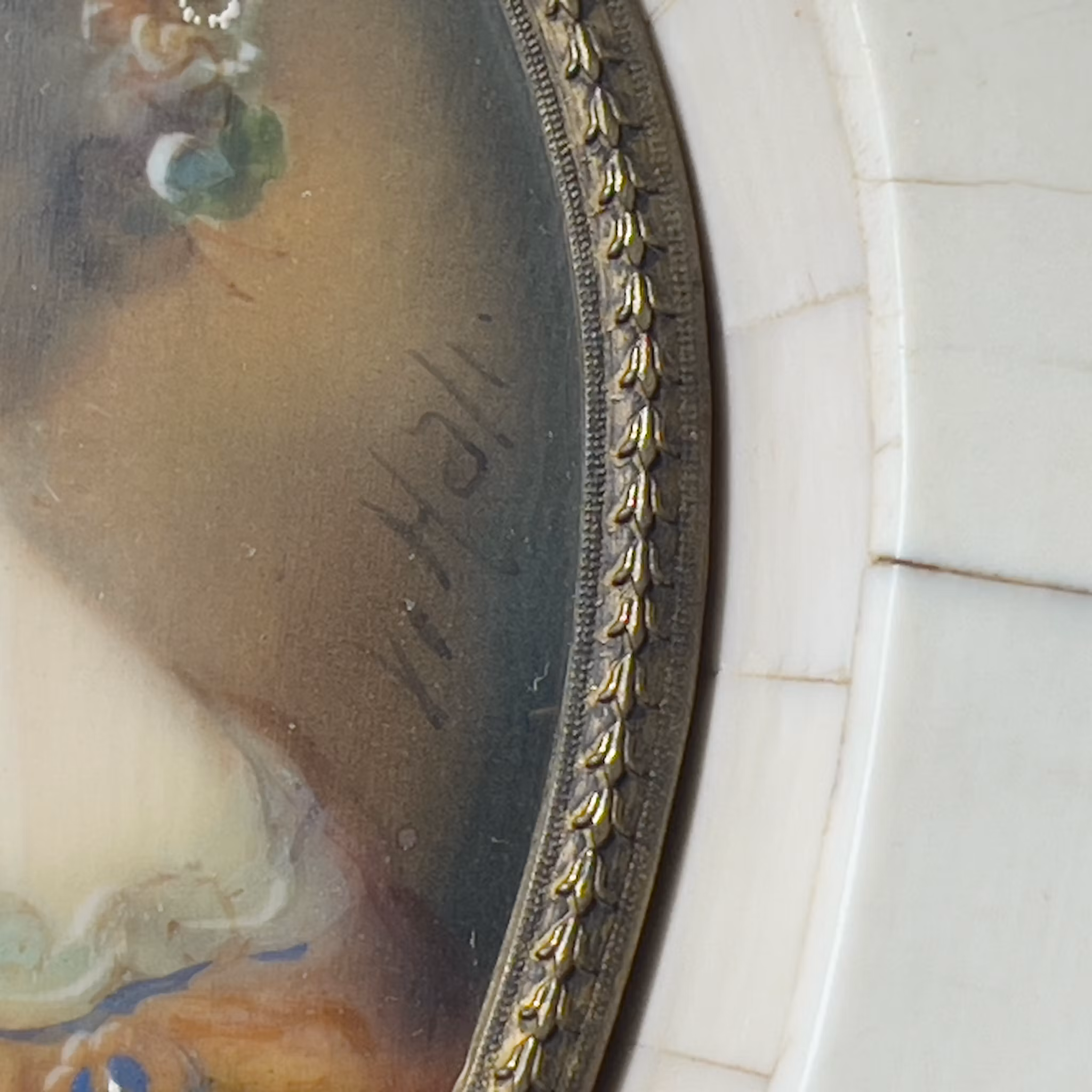 Miniatyrmaleri bærer signatur, ramme av bein $164.45 Legg i handlekurv Informasjon Antik Miniatyrtavla bär signatur, ram av ben ca 14 X 11 cm inkl ram.