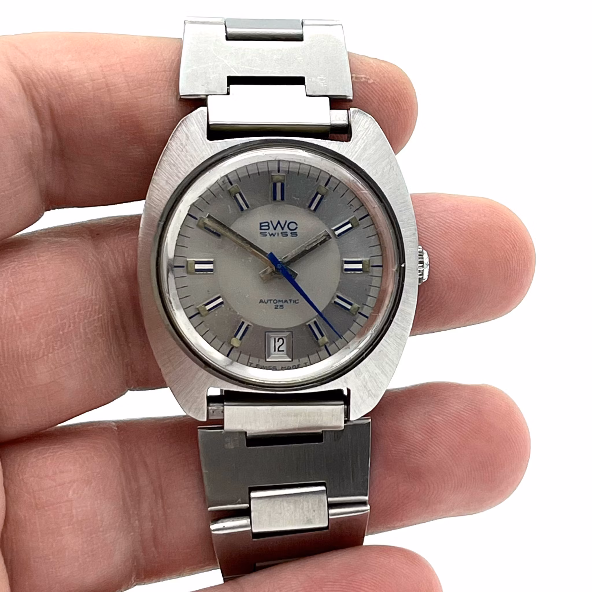 BWC 25, Automatisk herrearmbåndsur $385.00 Legg i handlekurv Informasjon BWC Swiss Automatic 25, Herr rmbanduhrDiameter exkl. krona: 35 mm, Ticker vid skakningar.