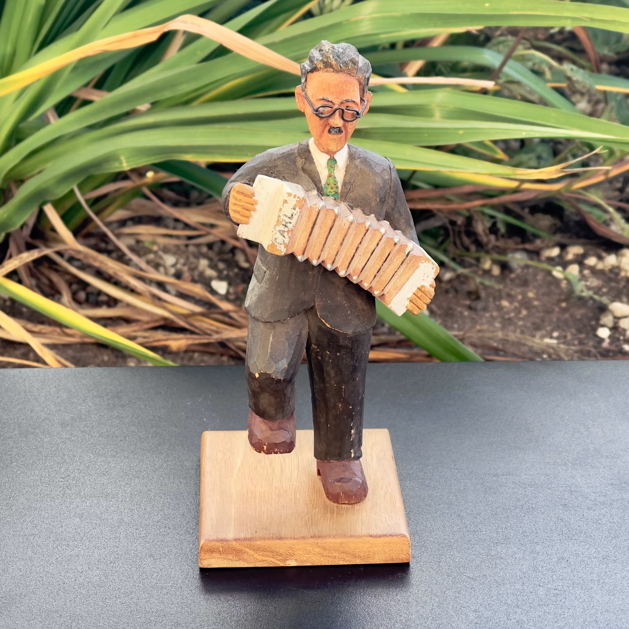 Rzeźbiona i malowana drewniana rzeźba, sygnowana CARL. 495 kr Slutsåld Informacja Skuret och bemålat trä skulptur / figur, signerad CARL.Höjd: ca 18 cm.