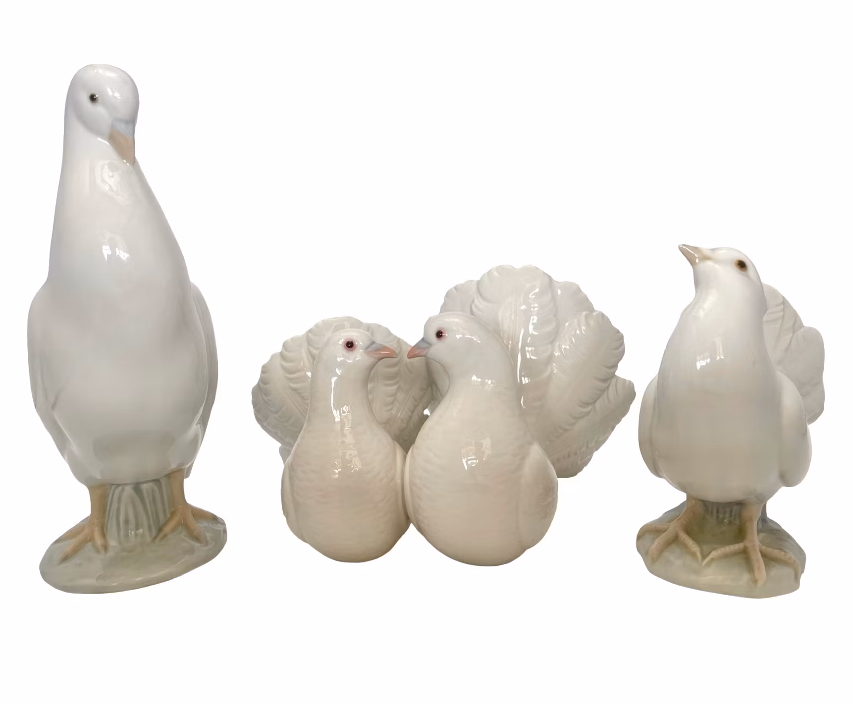 3 szt., figurki porcelanowe gołębie Lladro, Hiszpania