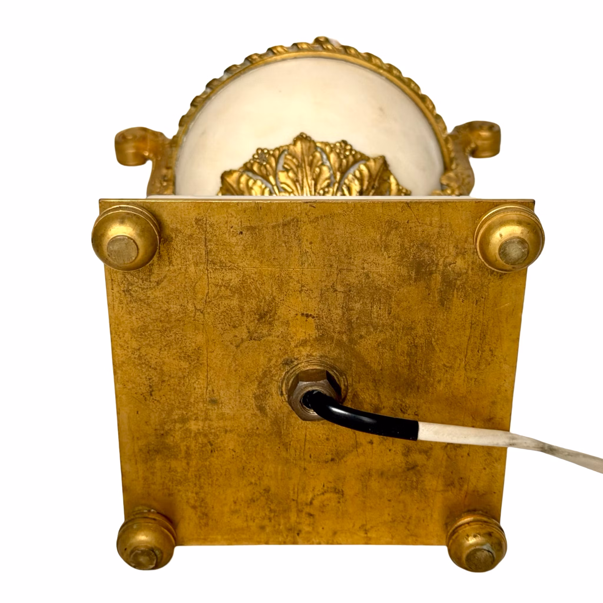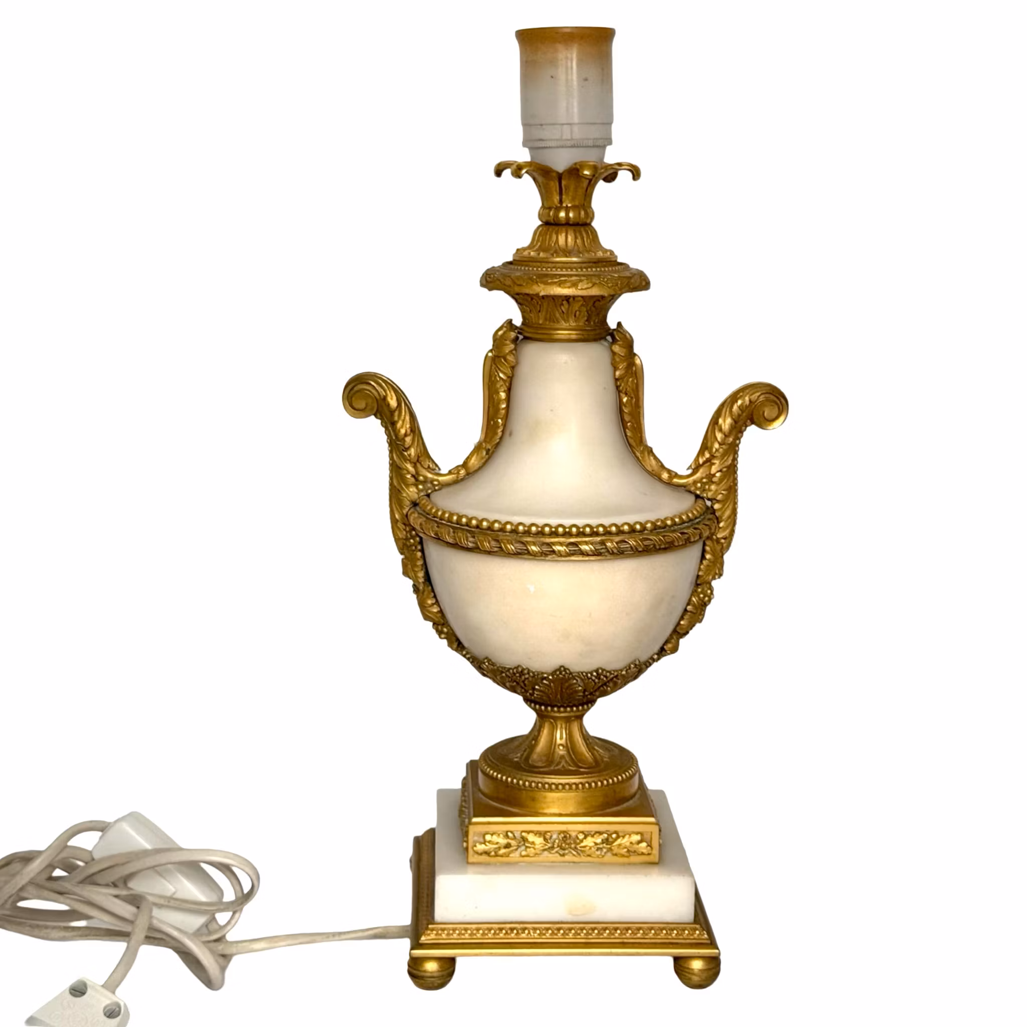 Antik bordslampa, Förgylld mässing och vit marmor, Louis XVI-stil, Frankrike