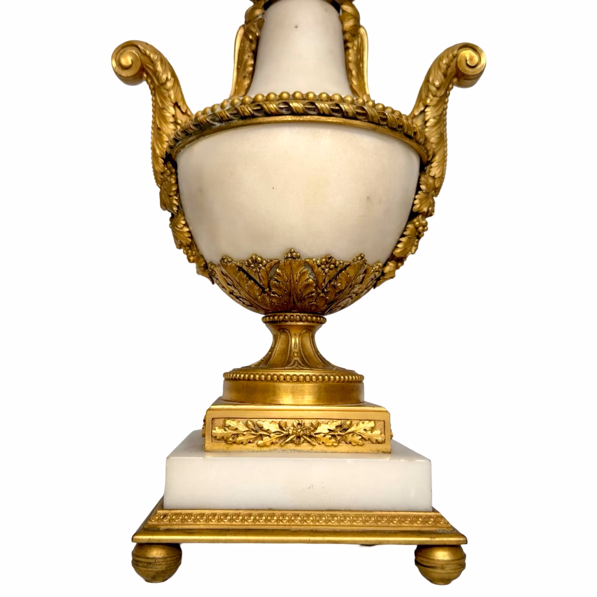 Zabytkowa lampa stołowa, pozłacany mosiądz i biały marmur, styl Ludwika XVI, Francja