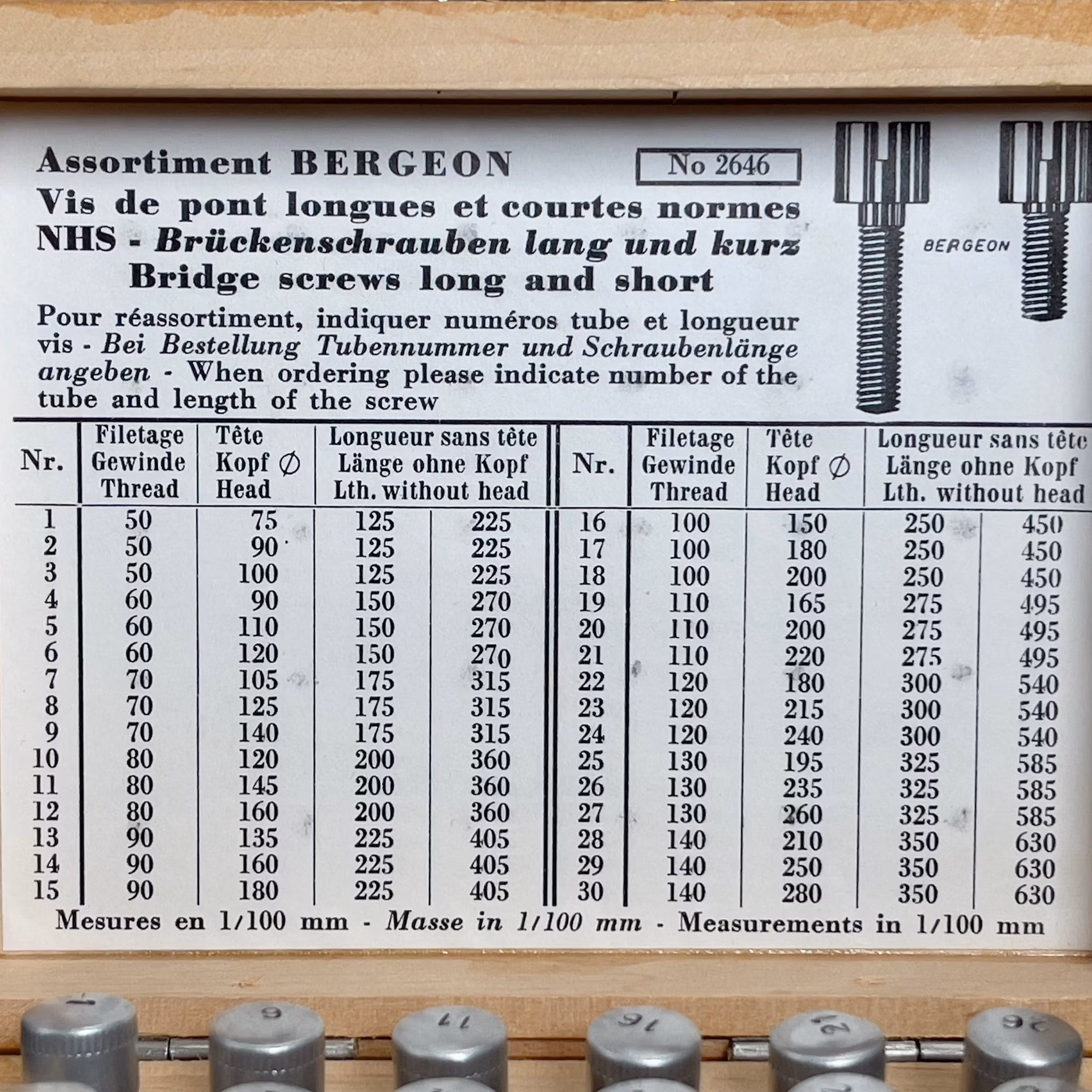 Bergeon, asortyment 2646 - Śruby mostowe NHS, szwajcarskie 139,50 € Dodaj do koszyka Informacja Bergeon, sortiment 2646 - NHS broskruvar långa och korta