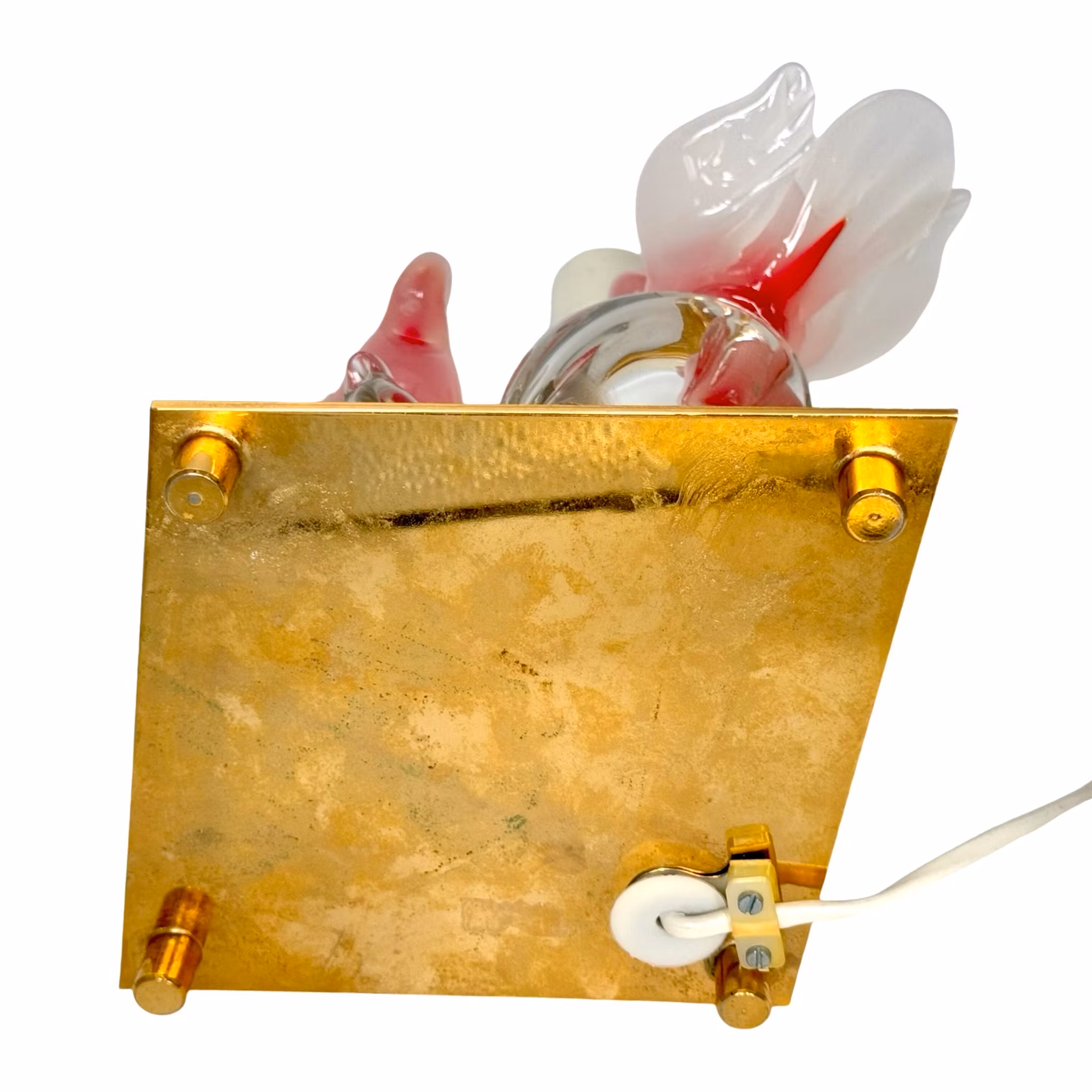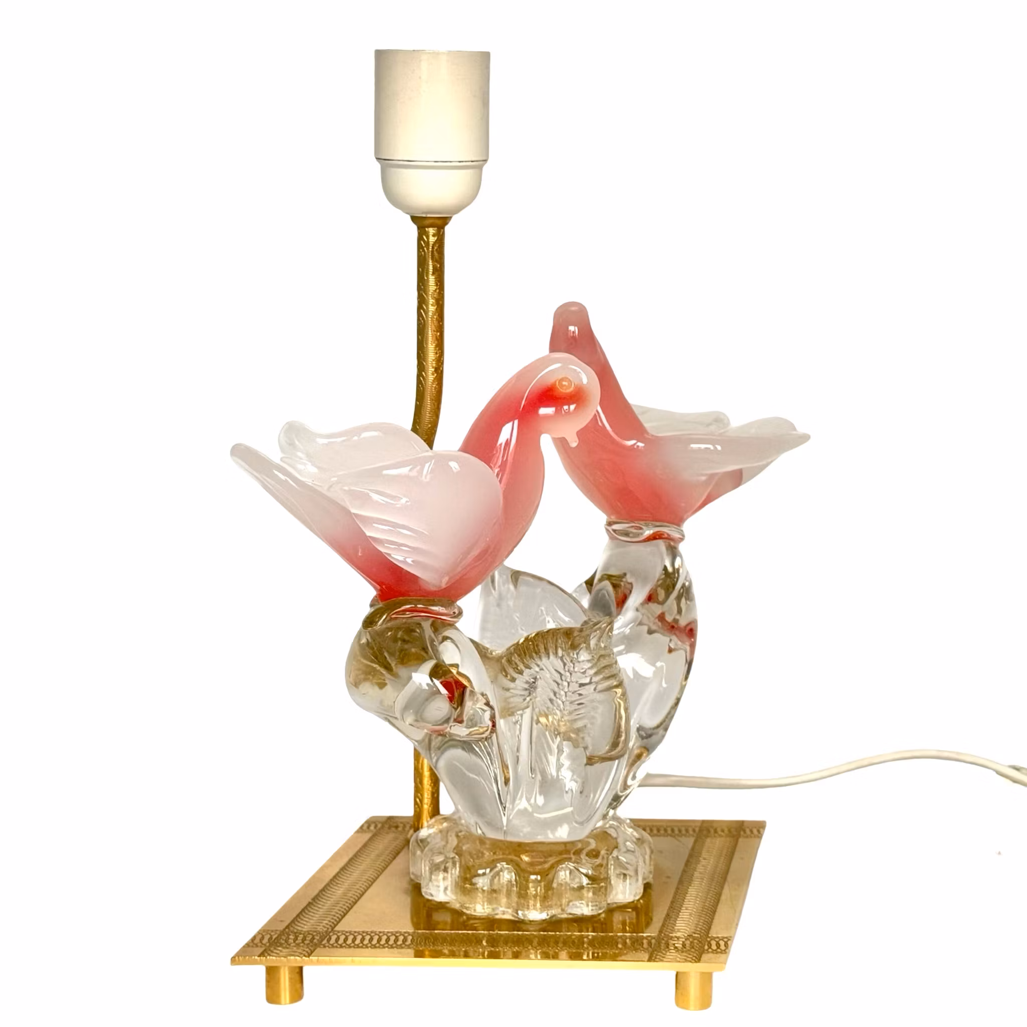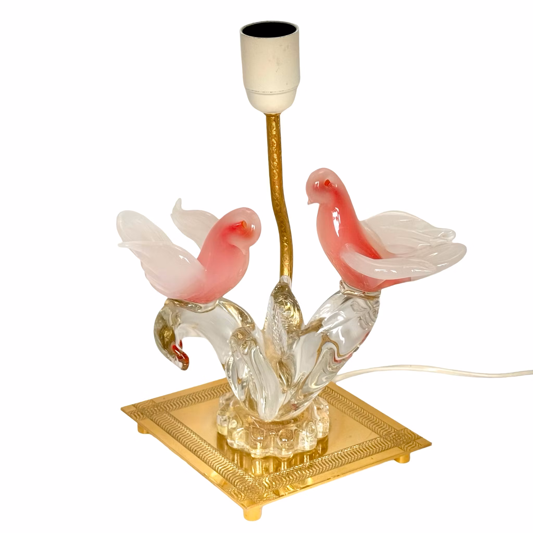 Lampa stołowa Murano, szkło w kształcie 2 gołębi, zamontowana na mosiężnej lampie stołowej